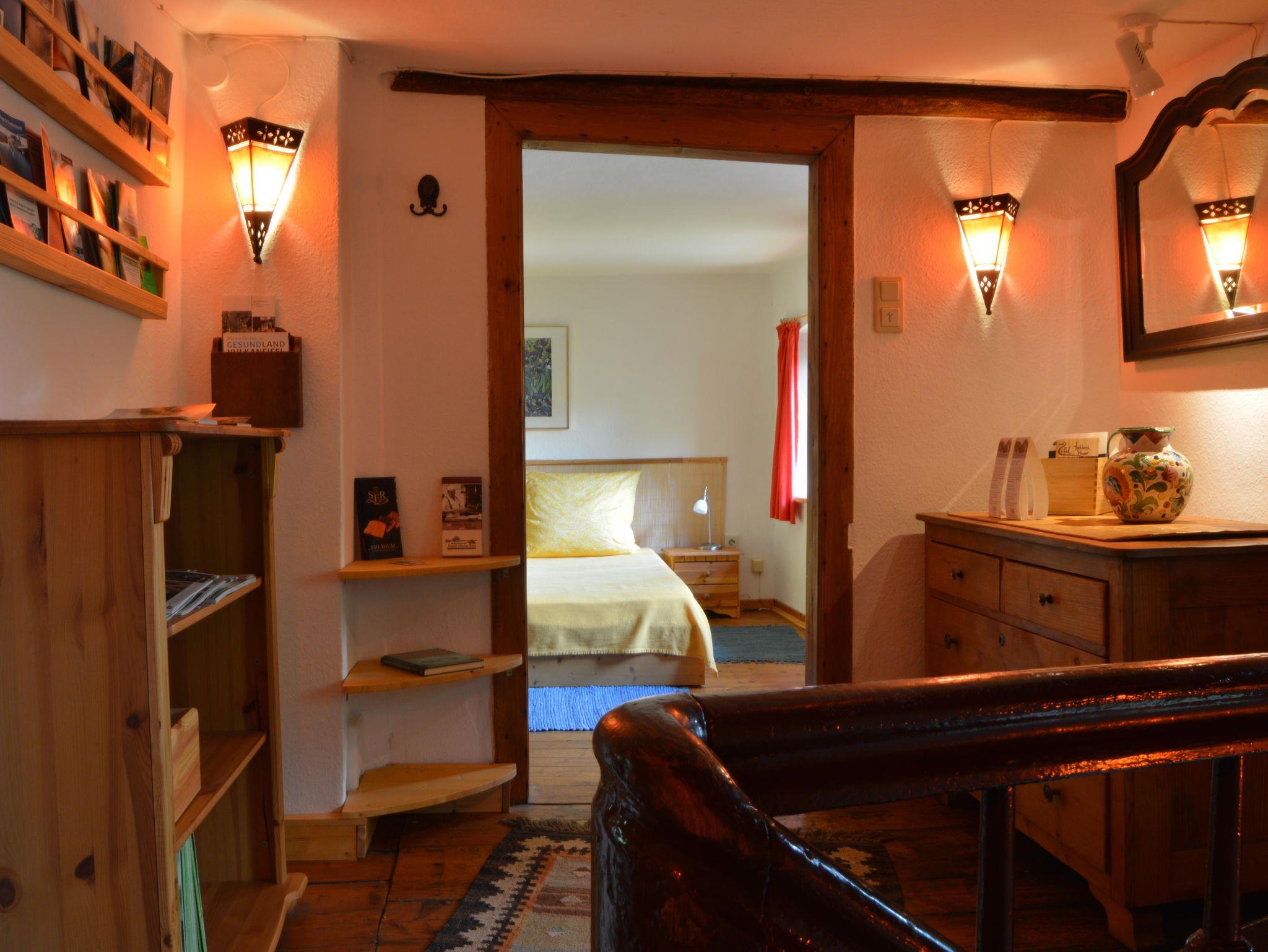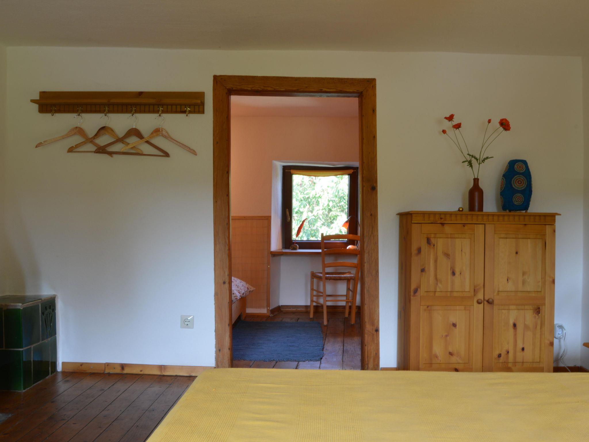 • Obergeschoss: 1 Doppelzimmer mit zugehöriger Kammer mit Schreibtisch und Kleiderschrank (Aufbettung möglich), 1 Einzelzimmer mit Schreibtisch, Leseecke und Kammer als Kleiderschrank, Flur