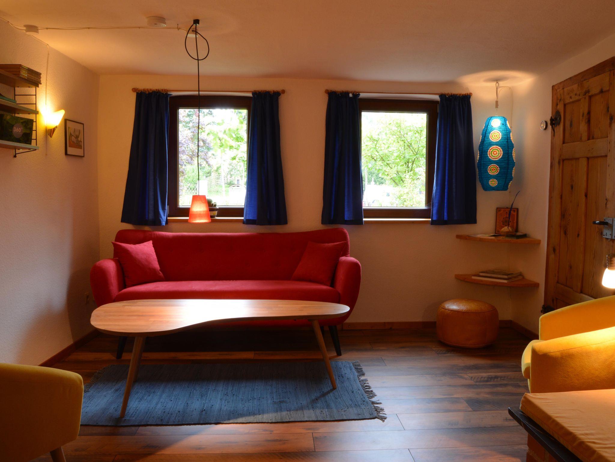 Alle Räume haben entweder Fenster zum Hof (mit freiem Ausblick auf das Dorf) oder zum Garten (freier Ausblick in den Garten, auf Wiesen und Wald). Alle Fenster sind mit Fliegengittern ausgestattet; in den Schlafzimmern zusätzlich mit Verdunkelungsmöglichkeit. Ein Babybett und ein Kinderhochstuhl stehen zur Verfügung. Alle Räume des Hauses haben Internetanschluss über D-LAN oder W-LAN. „Haus Kaspers“ ist ein Nichtraucherhaus. Haustiere sind nicht erlaubt. 5 Stellplätze für Pkw befinden sich in der Einfahrt. Weiterhin können Sie Ihre Fahrräder sicher unterstellen. Der Strom wird zu 100 % aus erneuerbaren Energien gewonnen. „Haus Kaspers“ besitzt eine zentrale Holzheizung. Für jeden Gast steht ein Bademantel zur Verfügung. Zusätzliche Decken und Kopfkissen auf Anfrage möglich. Erdgeschoss: Wohnküche, Wohnzimmer, Backesraum, Bad mit WC, Flur mit Garderobe und Schuhregal Obergeschoss: 1 Doppelzimmer mit Kammer und Einzelbett, 1 Einzelzimmer mit Kammer als Kleiderschrank, Flur Dachgeschoss: 1 Doppelzimmer