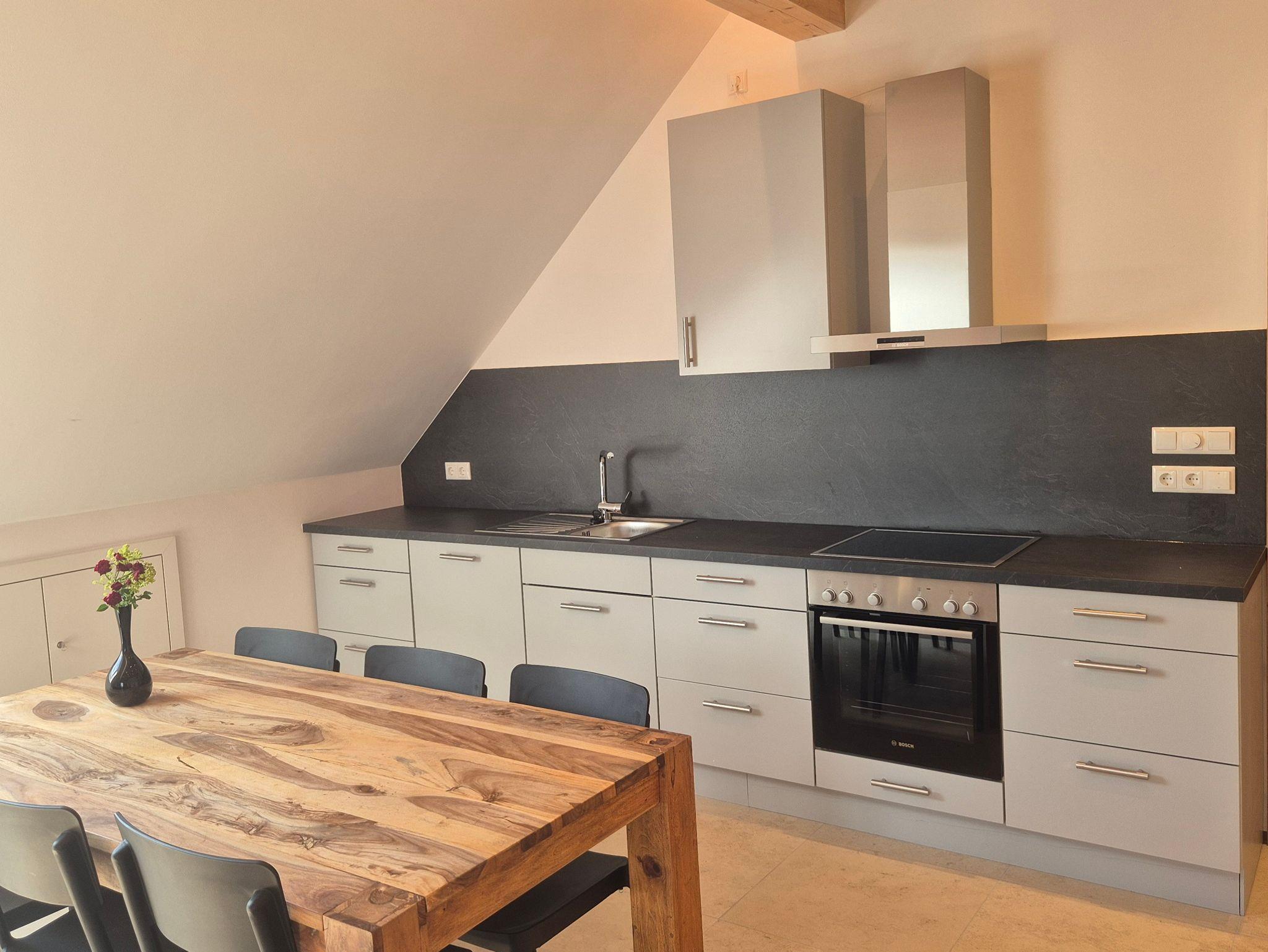 Unsere frisch sanierte Ferienwohnung mit 50 m² Wohnfläche in der 2. Etage bietet Platz für 1-5 Personen. Die gemütliche Wohnküche mit Essecke, Schlafsofa und Flachbild-TV lädt zum Entspannen ein.