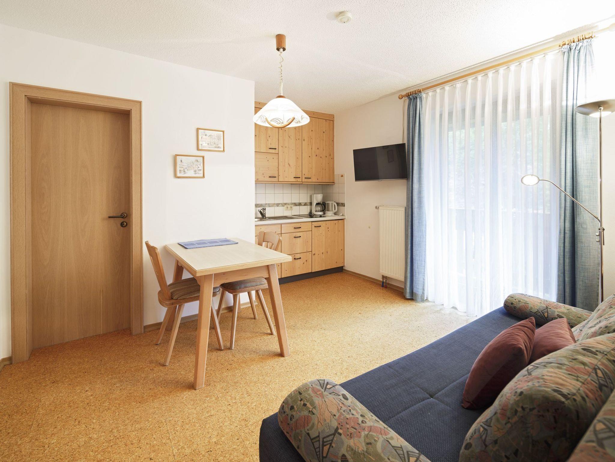 35 qm große Südbalkonwohnung, Wohn- und Schlafraum getrennt, Schlafzimmer 3. Bett möglich, Wohnraum mit Zugang zu großem , möblierten Balkon, TV u. DU/WC.