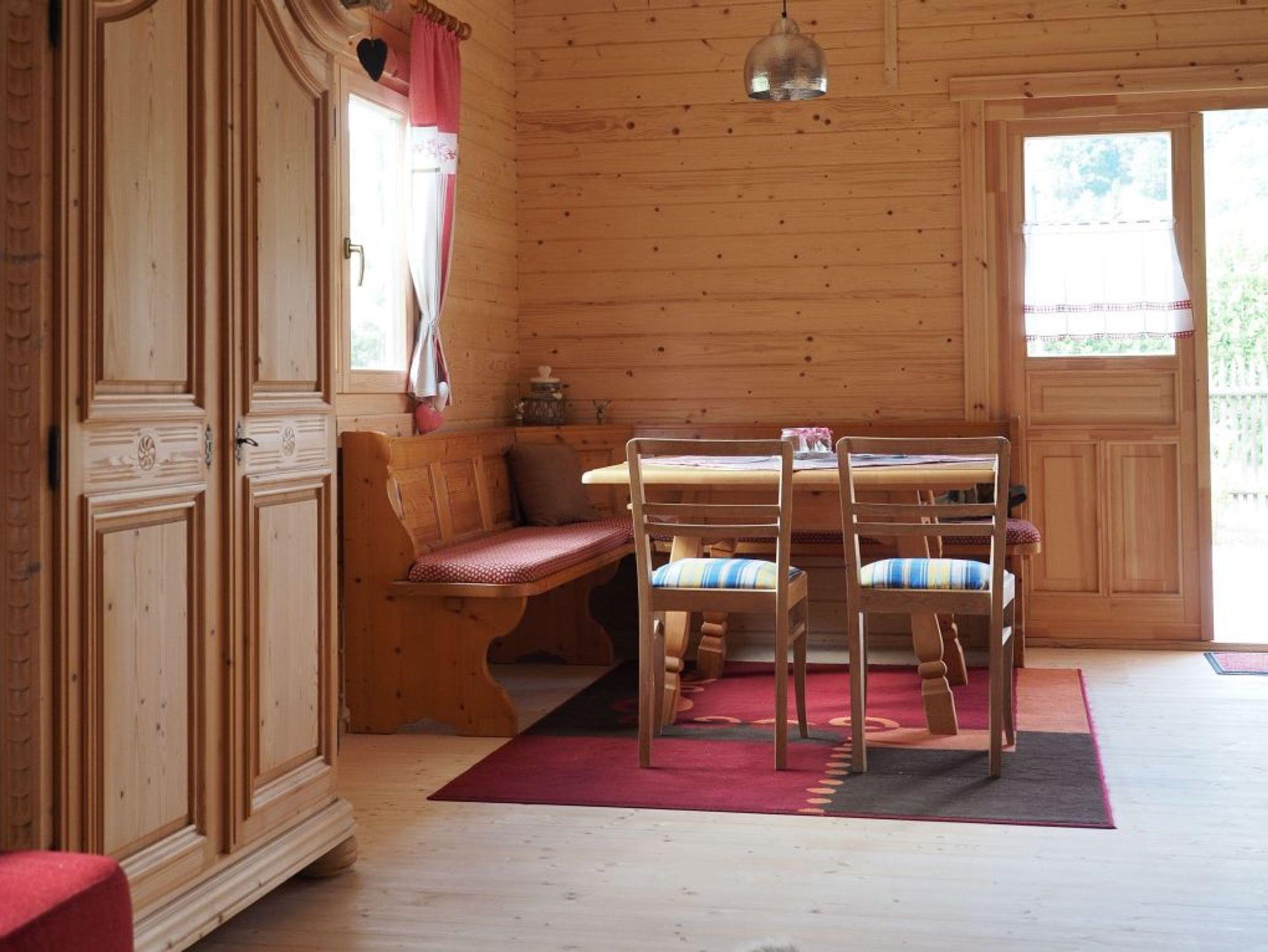 • großes Wohn-Esszimmer mit Schlafcouch & Sat-TV, Pelletsofen und Aufgang zum Schlafboden