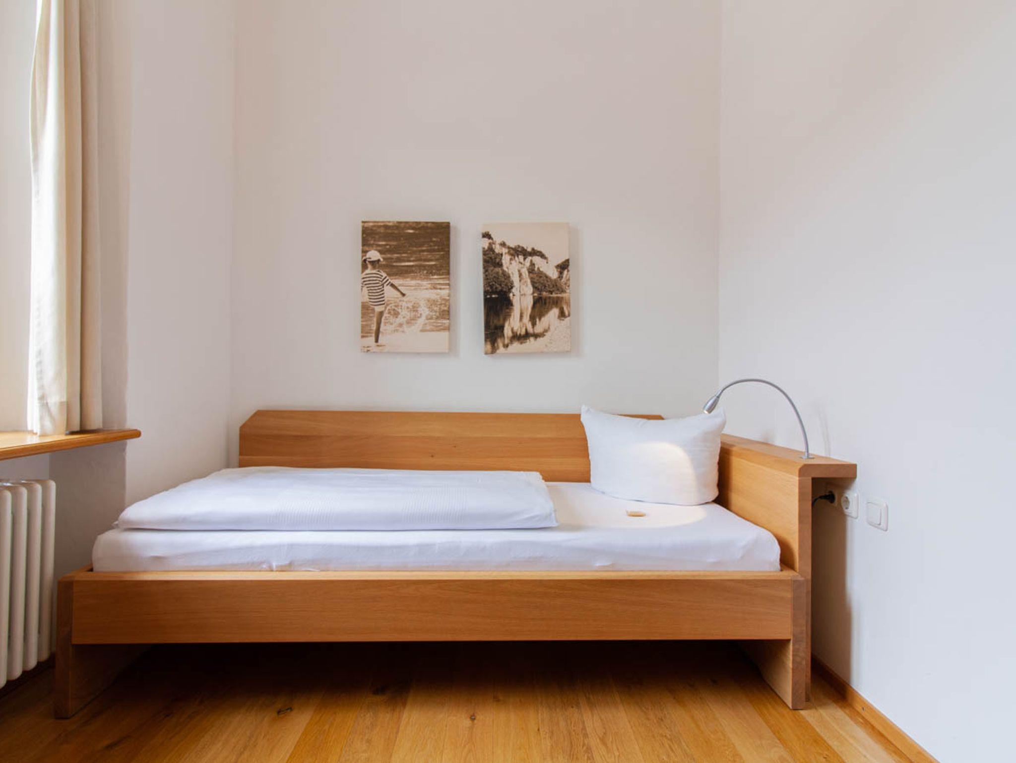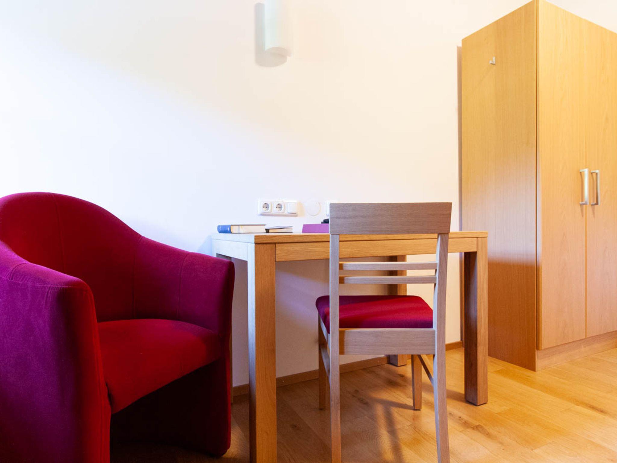 Mit der schlichten, soliden Ausstattung (Bett 90x200 cm, Schrank, Schreibtisch) in modernem Design, passen sich unsere Einzelzimmer im Georgstrakt an die klösterliche Umgebung an. Auf persönlichen Komfort (Dusche, Toilette, Haartrockner, Handtuchheizkörper) und moderne Technik (WiFi, Direktwahltelefon) müssen Sie dennoch nicht verzichten.