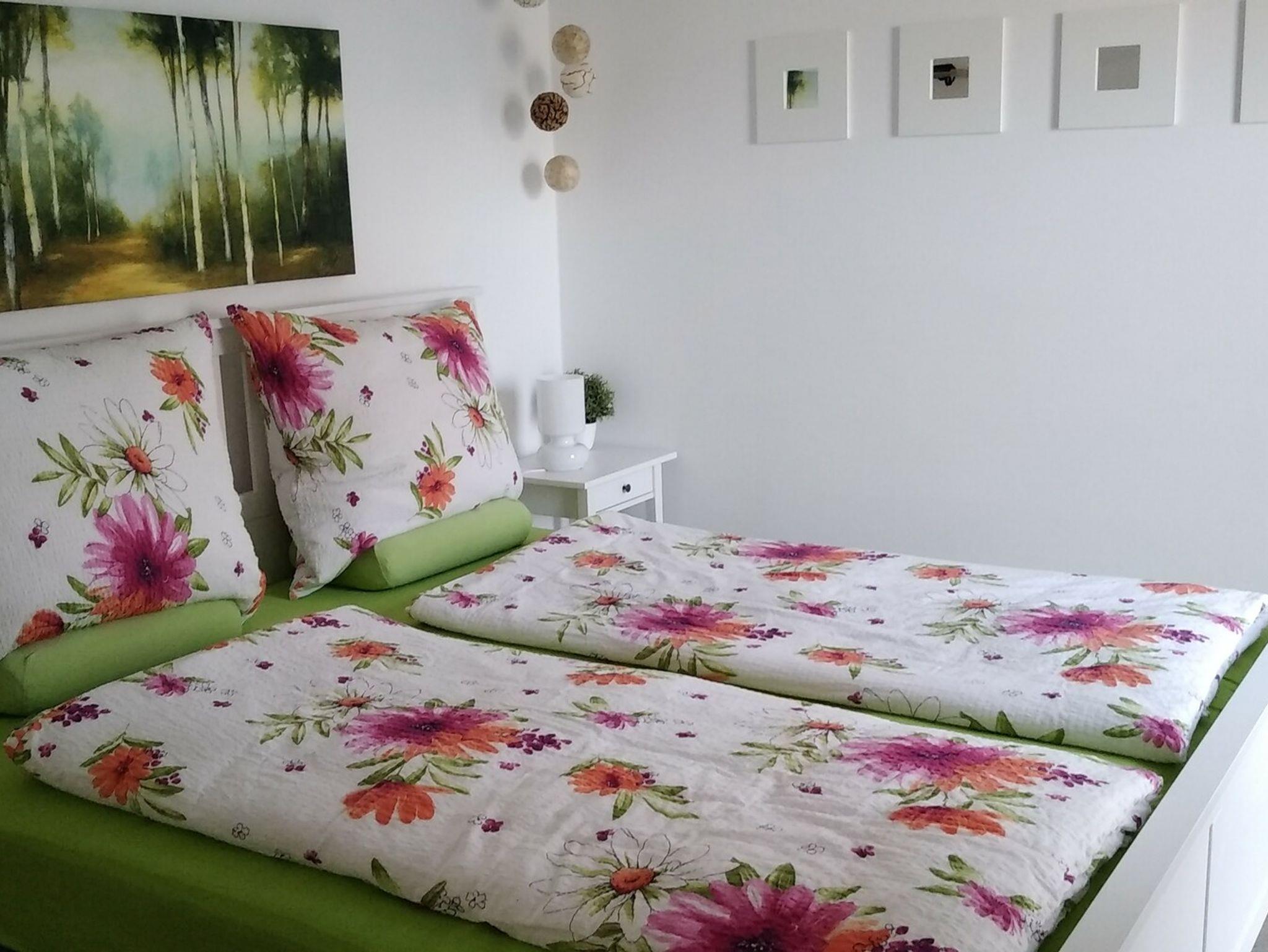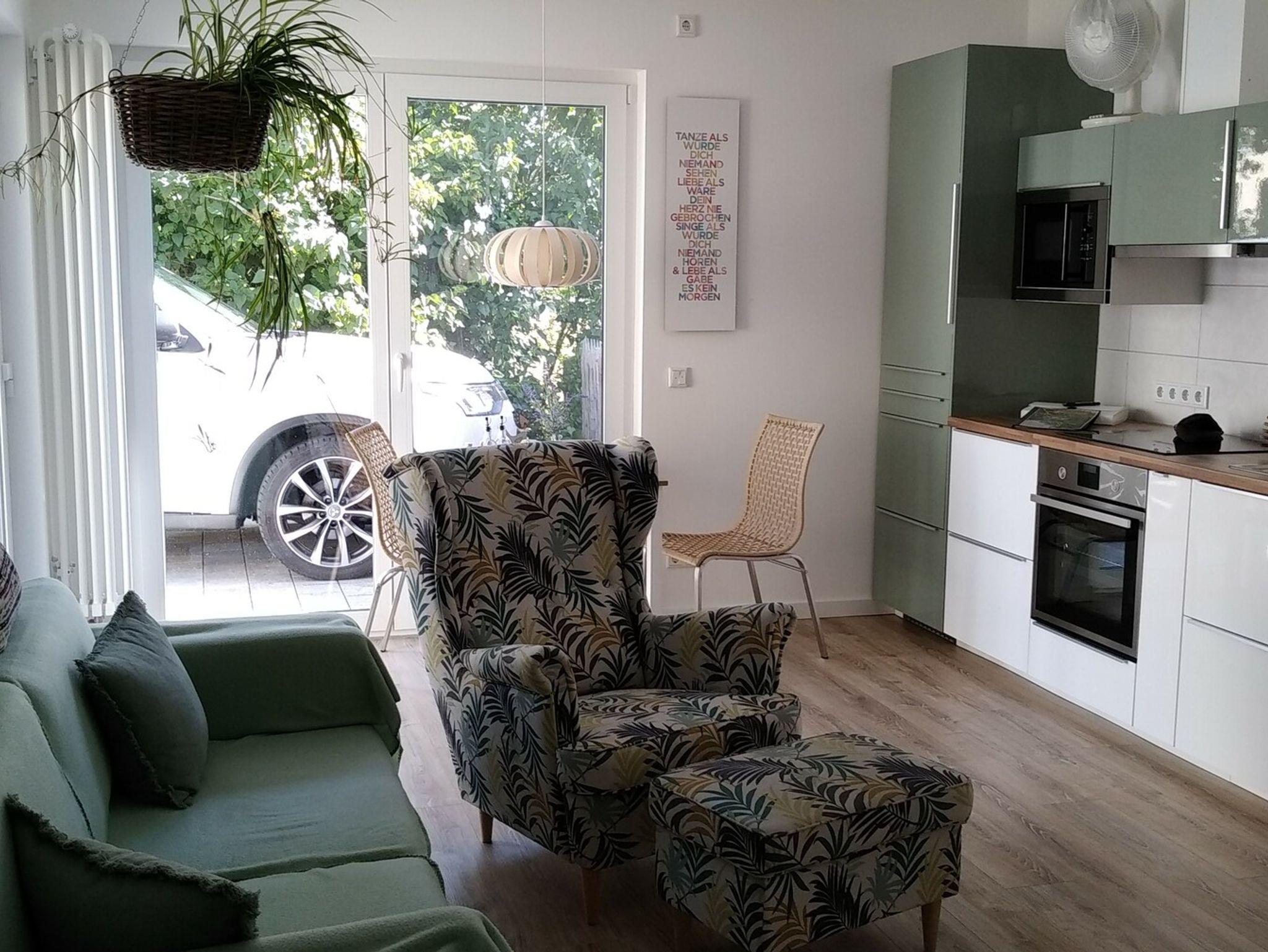 Auf Sie wartet eine neugebaute, barrierefreie Ferienwohnung mit 40m² Wohnfläche im Erdgeschoss mit Platz für 1-2 Personen, sie verfügt über einen separaten Eingang. Das gemütliche Wohnzimmer mit Couch und Ohrensessel mit Fußhocker lädt zum Verweilen ein. Die komplett ausgestattete Einbauküche mit Kühlschrank (***Sterne Kühlfach), Backofen, Cerankochfeld, Spülmaschine, Mikrowelle, Kaffeemaschine, Toaster, Wasserkocher, Stabmixer, Eierkocher und Handmixer lässt keine Wünsche offen. Die Ferienwohnung verfügt über ein Schlafzimmer mit einem Doppelbett und einem Zimmersafe. Das moderne Badezimmer mit Fußbodenheizung, Regenfalldusche, Waschbecken, WC, und Fön rundet das Gesamtbild ab.