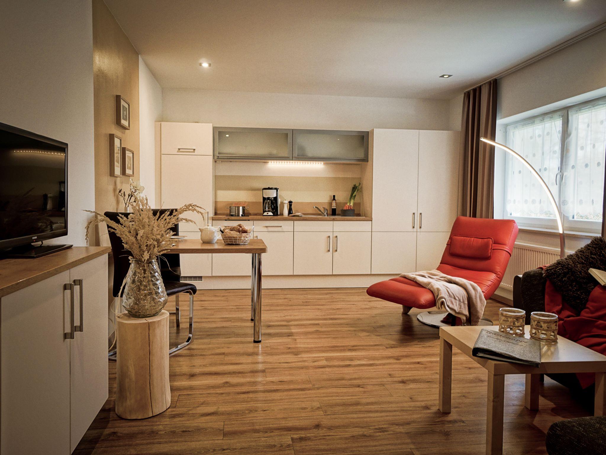 Einzimmerappartement ca. 35 m², bietet Platz für 2 - 3 Personen. Das Appartement verfügt über ein Doppelbett, Schlafcouch, Küchenzeile mit Sitzgelegenheit, sowie ein Flachbild-TV und WLAN. Bettwäsche, Fön, Handtücher sowie Kücheninventar vorhanden. Zimmerreinigung alle drei Tage, extra Reinigung auf Anfrage. Die Endreinigung ist im Preis enthalten.