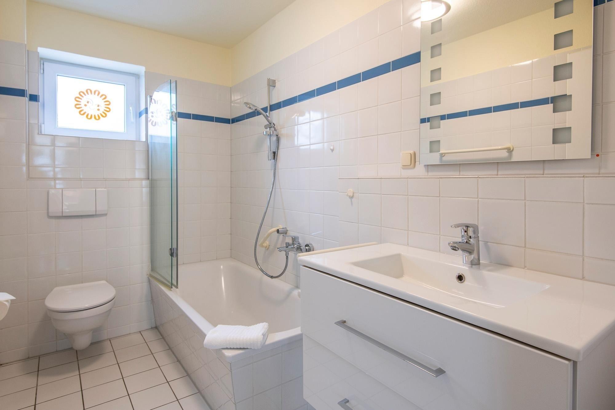 Das Herzstück der Wohnung ist das lichtdurchflutete Wohnzimmer mit hochwertiger Couchecke, gemütlichem Esstisch sowie direktem Zugang auf die möblierte Terrasse mit Blick ins Grüne. Für Unterhaltung sorgen Radio, Flatscreen-TV und ein kostenfreier WLAN-Anschluss. Die separate Küche ist mit Annehmlichkeiten wie einer Spülmaschine gut ausgestattet. Das separate Schlafzimmer ist mit bequemem Doppelbett und Kleiderschrank möbliert. Das Wohlfühlbad lässt Sie entspannt in den neuen Tag starten.