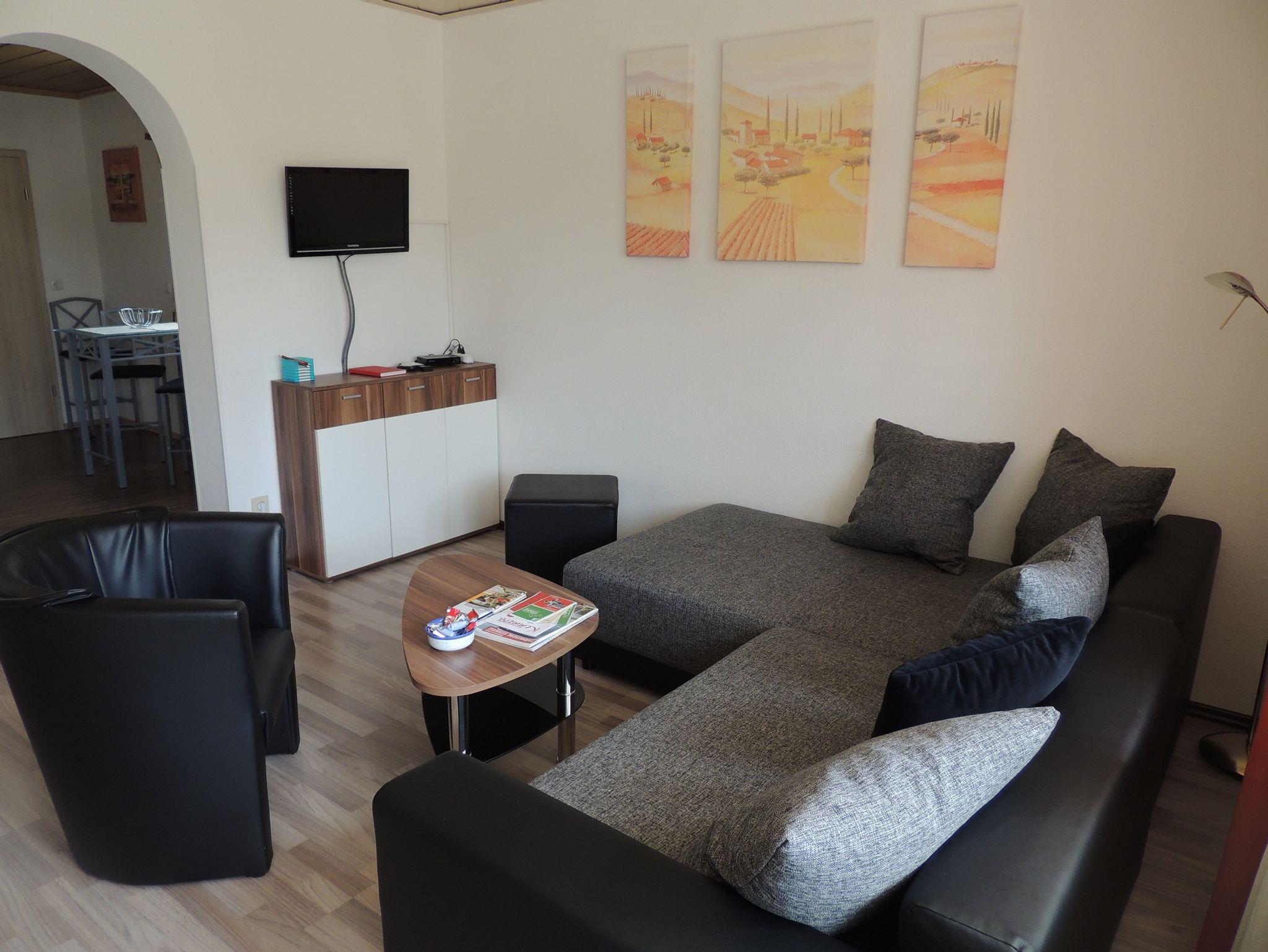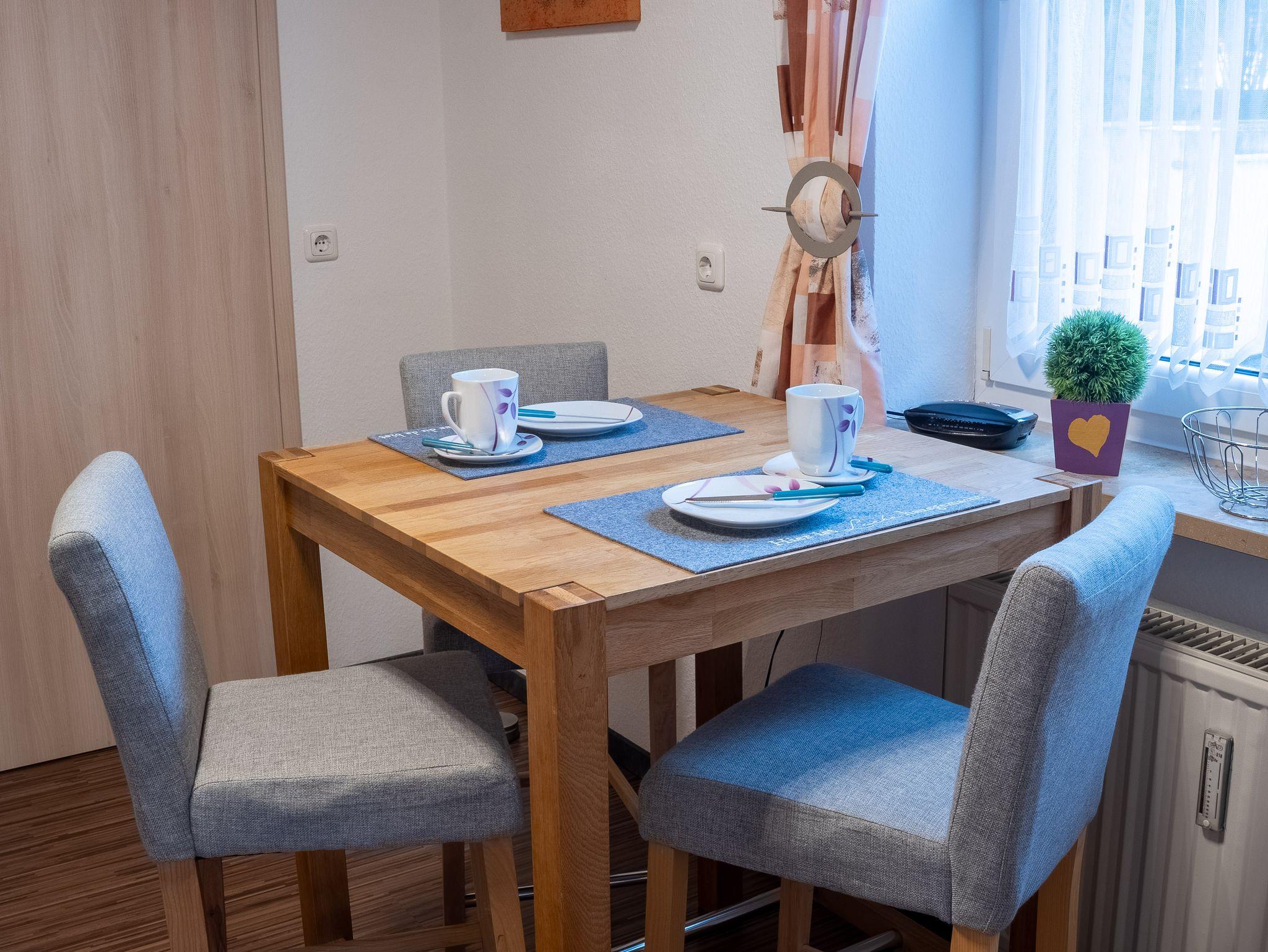 Unsere Wohnung befindet sich im Parterre, ist jedoch nicht ebenerdig, sondern nur über eine Treppe zugänglich. Die sonnige Südterrasse ist ausgestattet mit Tisch, Stühlen und Markise. Ein Garten mit Grillmöglichkeit steht Ihnen zur Mitbenutzung zur Verfügung. Waschmaschinen- und Trocknernutzung (im Haus) möglich (je 3,00 € pro Nutzung pro Gerät). Endreinigung ist im Preis inbegriffen! Parkplatz direkt am Haus, Unterstellmöglichkeit für bis zu drei Fahrräder vorhanden.