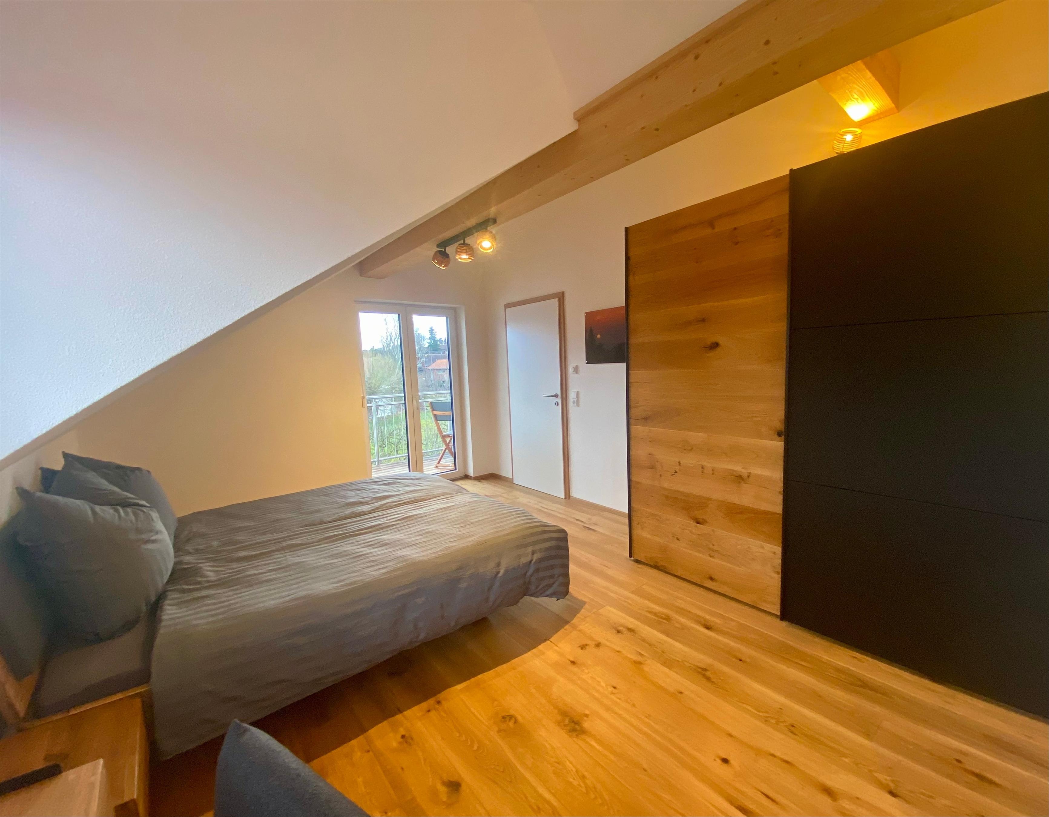 Im Schlafzimmer befindet sich ein Doppelbett (1,80mx200m), dazu ein großer Kleiderschrank und ein kleiner Schreibtisch, bzw. Schminktisch.