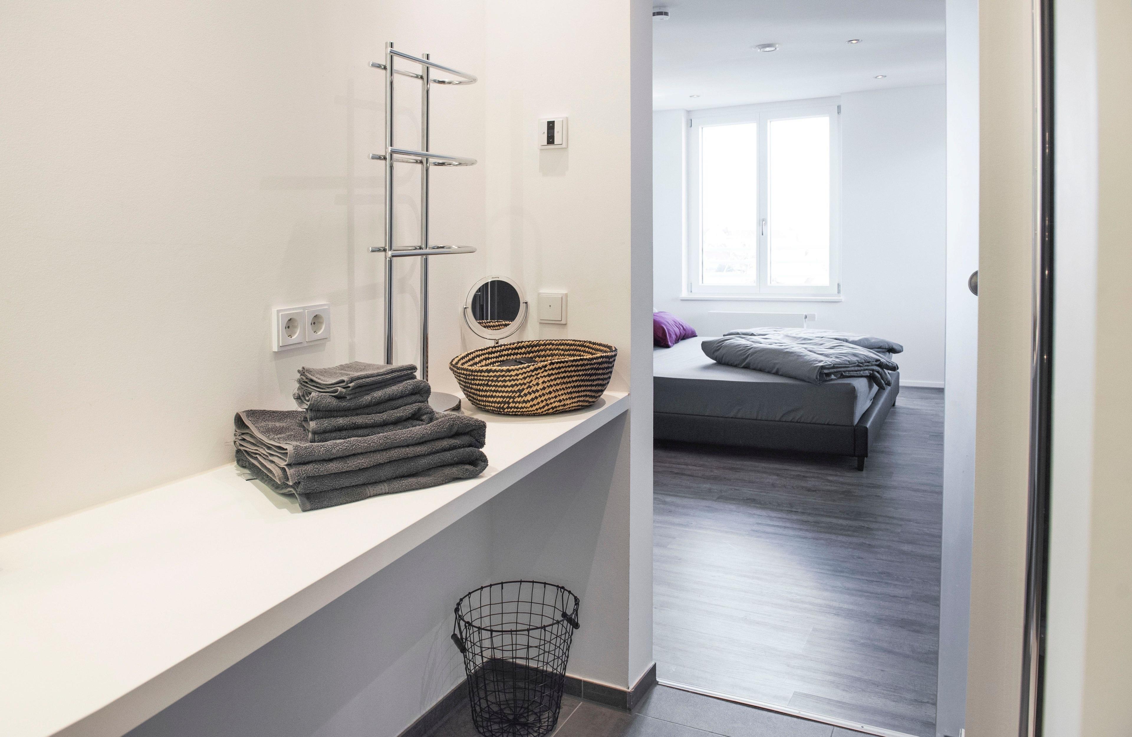 Das Schlafzimmer empfängt Sie mit einem 180x200cm Doppelbett und Zugang zum Badezimmer. Die Beleuchtung und Heizung im gesamten Appartement wird über ein Smart-Home-System gesteuert, worüber ihr je nach Empfinden Farbton und Lichtintensität bequem einstellen könnt. Zusätzlich bietet die Wohnung Breitband Internet WLAN.
