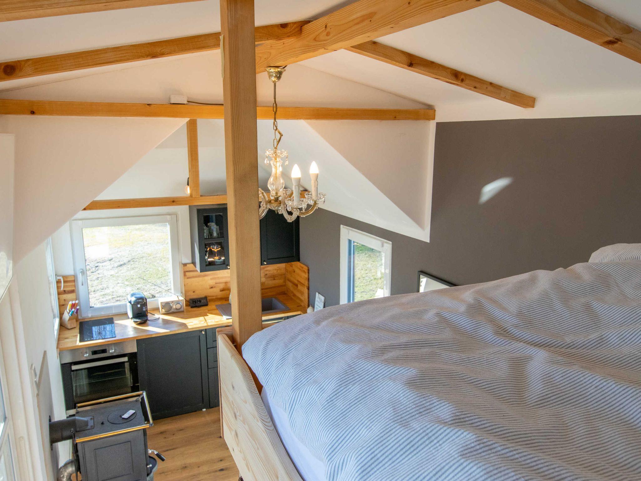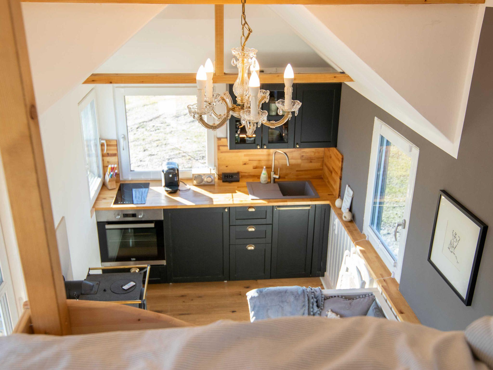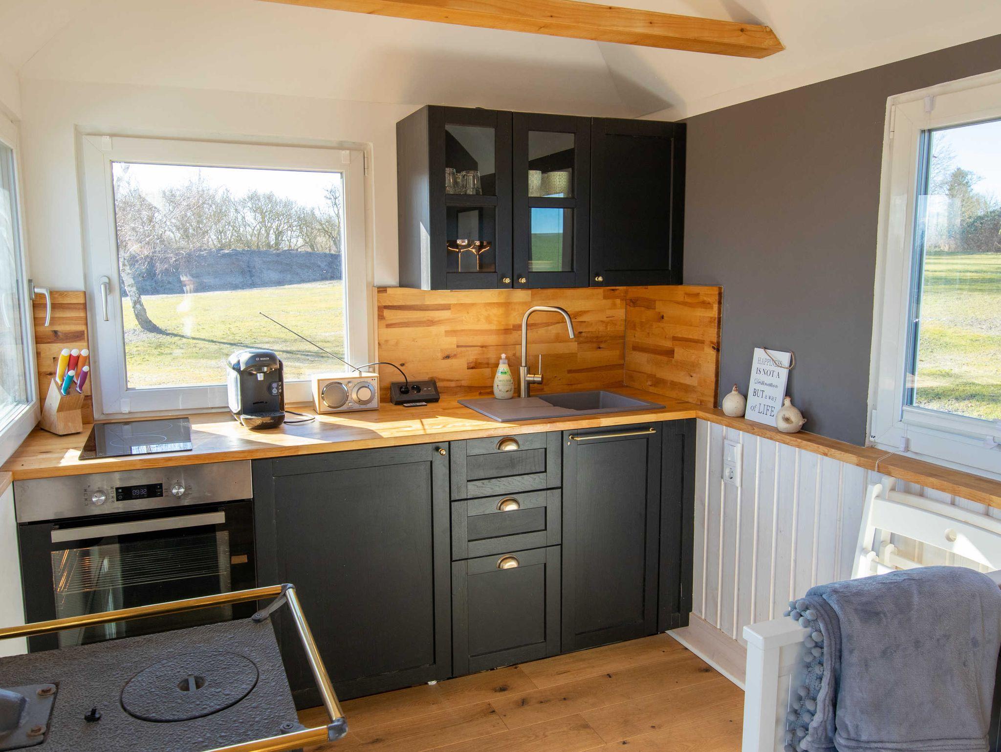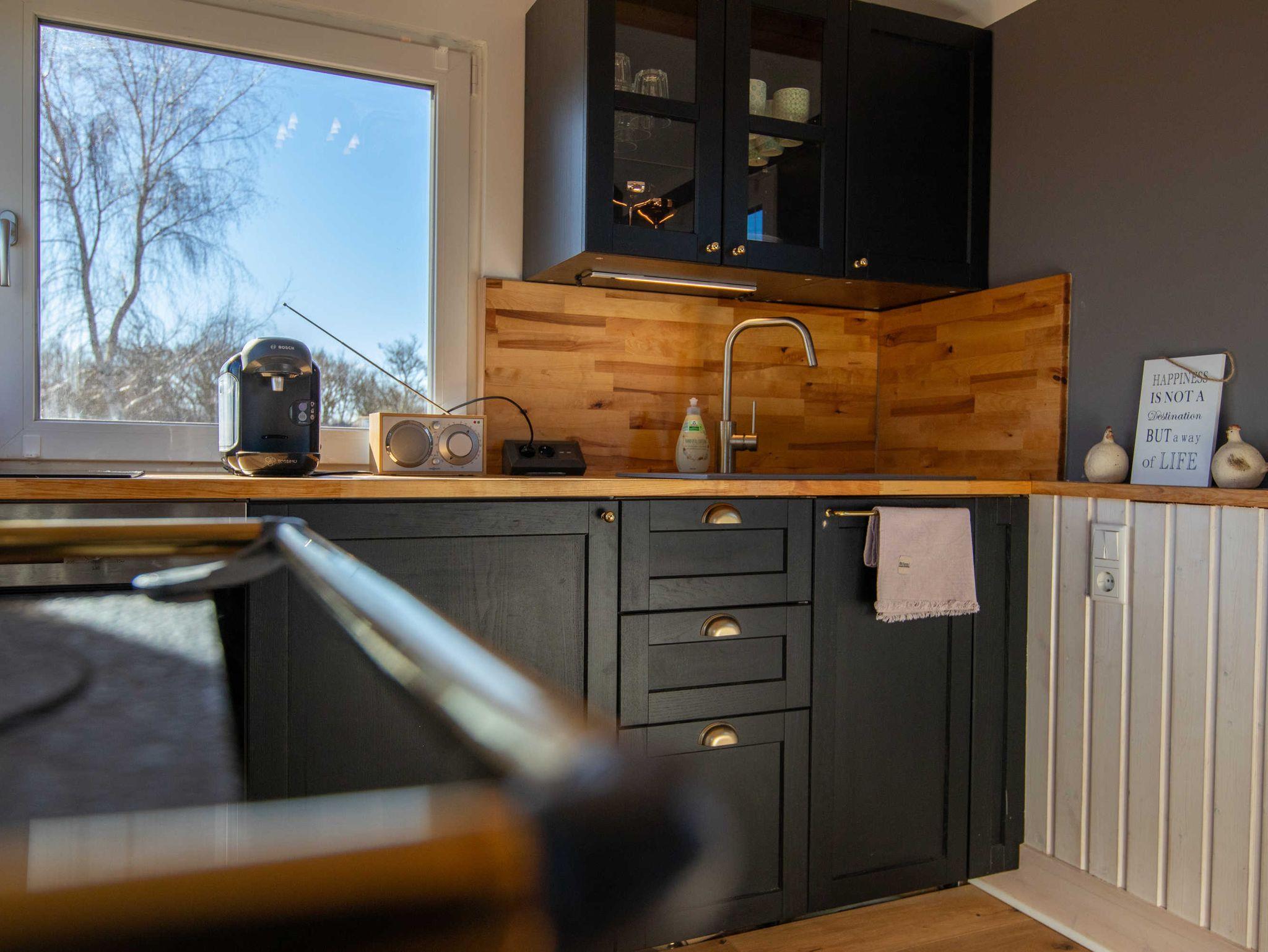 Das Tiny House in Kenz-Küstrow, auf einem Gutshof-Grundstück gelegen, bietet bis zu 3 Personen Platz. Das Ferienhaus lässt auf 20 m² Grundfläche keine Wünsche übrig: Kochen in der perfekt ausgestatteten Küche, Schlafen im Doppelbett (160x200) unter dem Dach, kuschelige Abende am Holzofen und eine hübsche Holzterrasse mit Sitz- und Grillmöglichkeit direkt vor der Türe. Das Schlafsofa (80x200) bietet eine weitere Schlafmöglichkeit. Im Bad befindet sich eine ebenerdige Dusche und neben dem WC einen beheizbaren Spiegel. Selbstverständlich bieten wir dir WLAN und unser Tiny House ist mit einer Zentralheizung und Fußbodenheizung ausgestattet. Nicht nur Romantiker, Schriftsteller, Radfahrer und Wasserliebehaber kommen hier auf Ihre Kosten, auch für Naturfotografen bieten sich herrliche Bilder. Insbesondere zur Zeit des Kranichzugs im Frühjahr und Herbst.