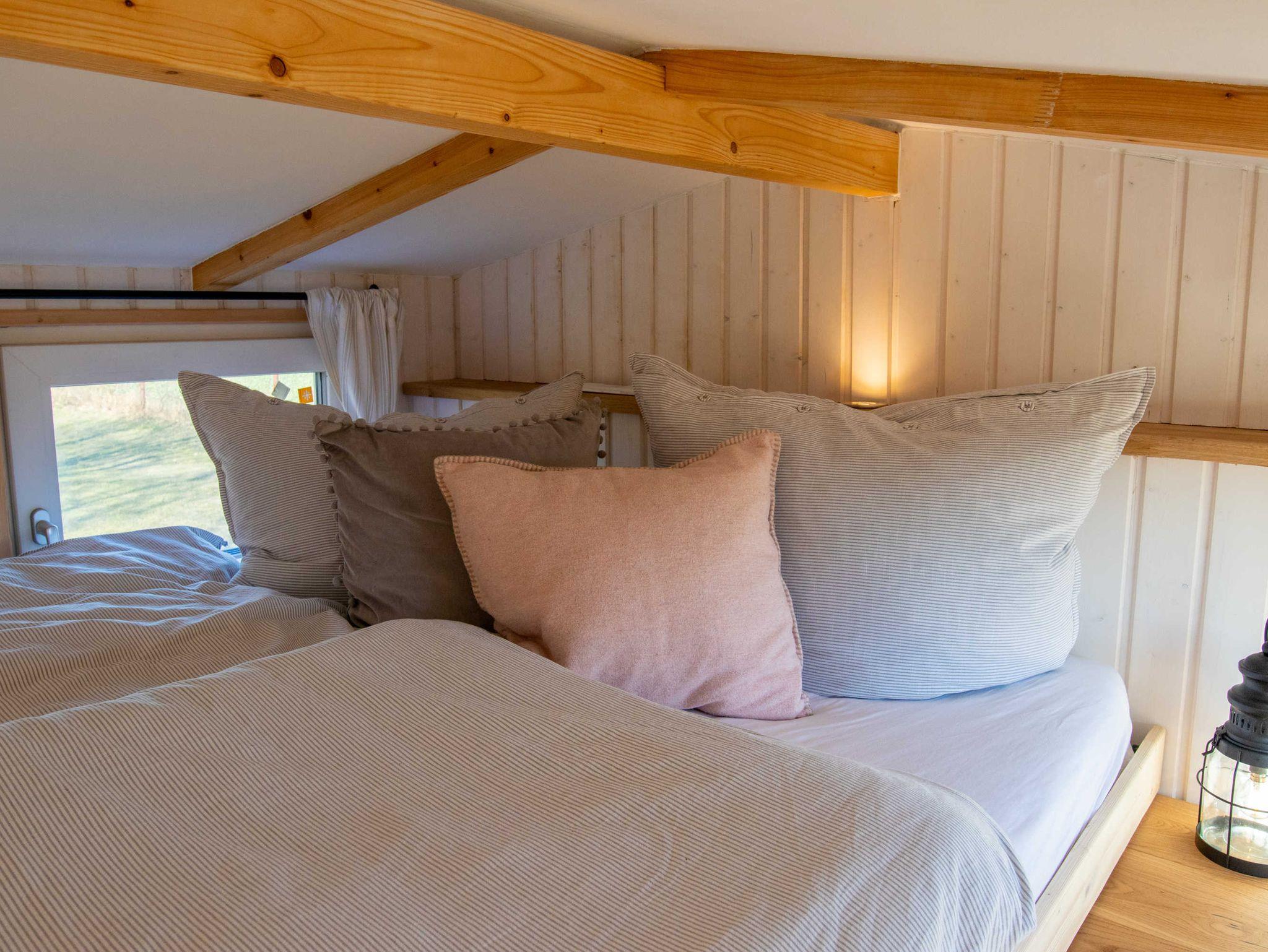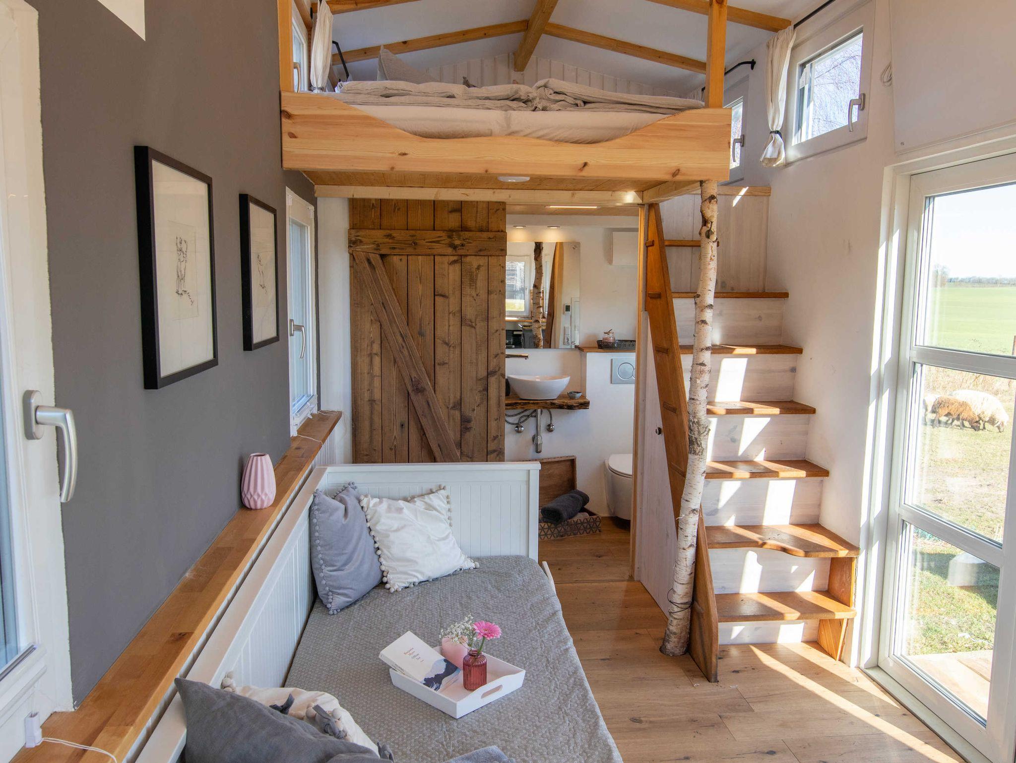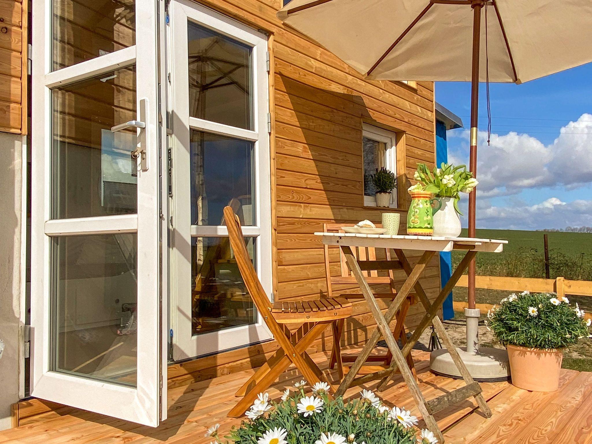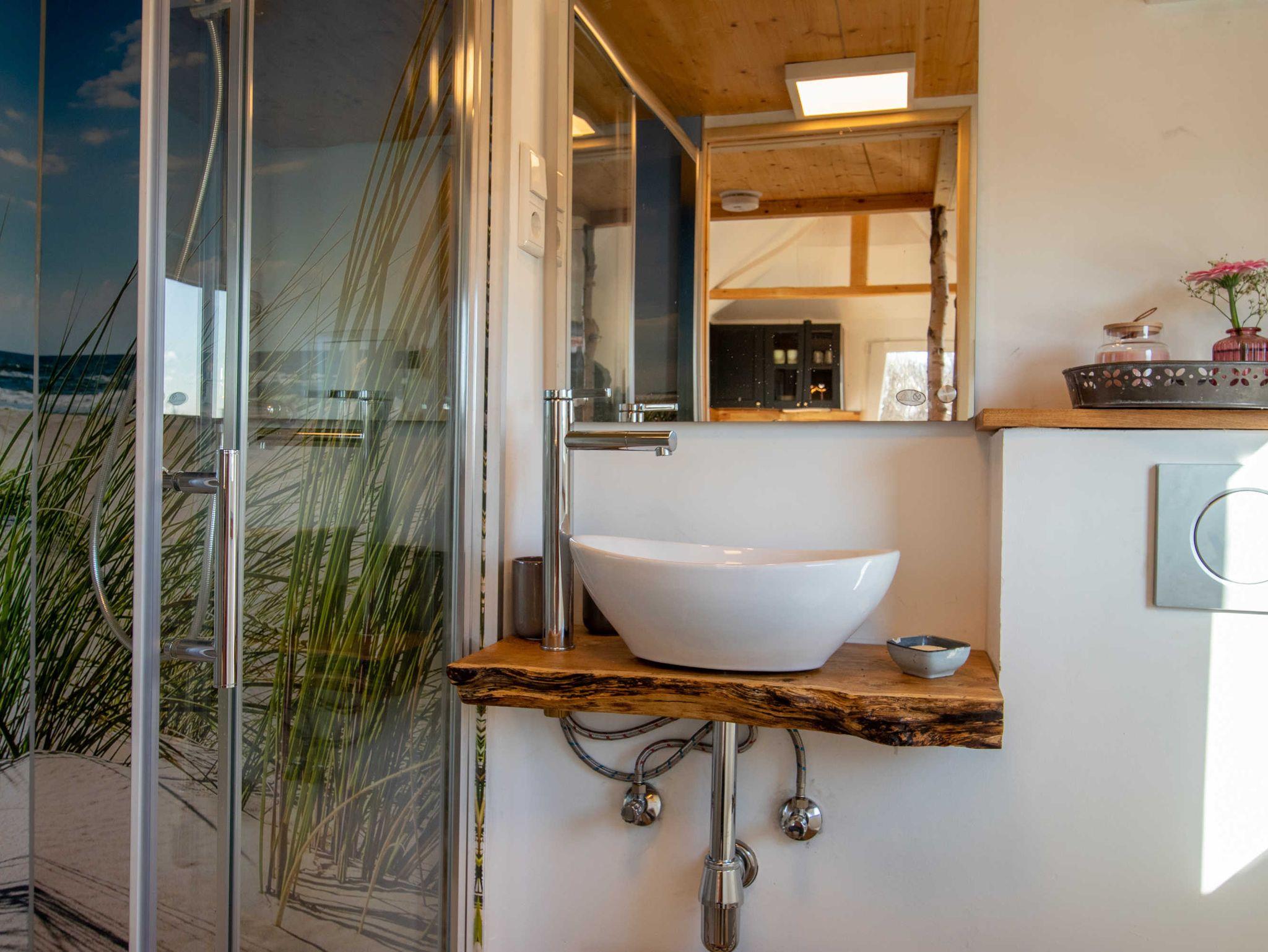 Das Tiny House in Kenz-Küstrow, auf einem Gutshof-Grundstück gelegen, bietet bis zu 3 Personen Platz. Das Ferienhaus lässt auf 20 m² Grundfläche keine Wünsche übrig: Kochen in der perfekt ausgestatteten Küche, Schlafen im Doppelbett (160x200) unter dem Dach, kuschelige Abende am Holzofen und eine hübsche Holzterrasse mit Sitz- und Grillmöglichkeit direkt vor der Türe. Das Schlafsofa (80x200) bietet eine weitere Schlafmöglichkeit. Im Bad befindet sich eine ebenerdige Dusche und neben dem WC einen beheizbaren Spiegel. Selbstverständlich bieten wir dir WLAN und unser Tiny House ist mit einer Zentralheizung und Fußbodenheizung ausgestattet. Nicht nur Romantiker, Schriftsteller, Radfahrer und Wasserliebehaber kommen hier auf Ihre Kosten, auch für Naturfotografen bieten sich herrliche Bilder. Insbesondere zur Zeit des Kranichzugs im Frühjahr und Herbst.