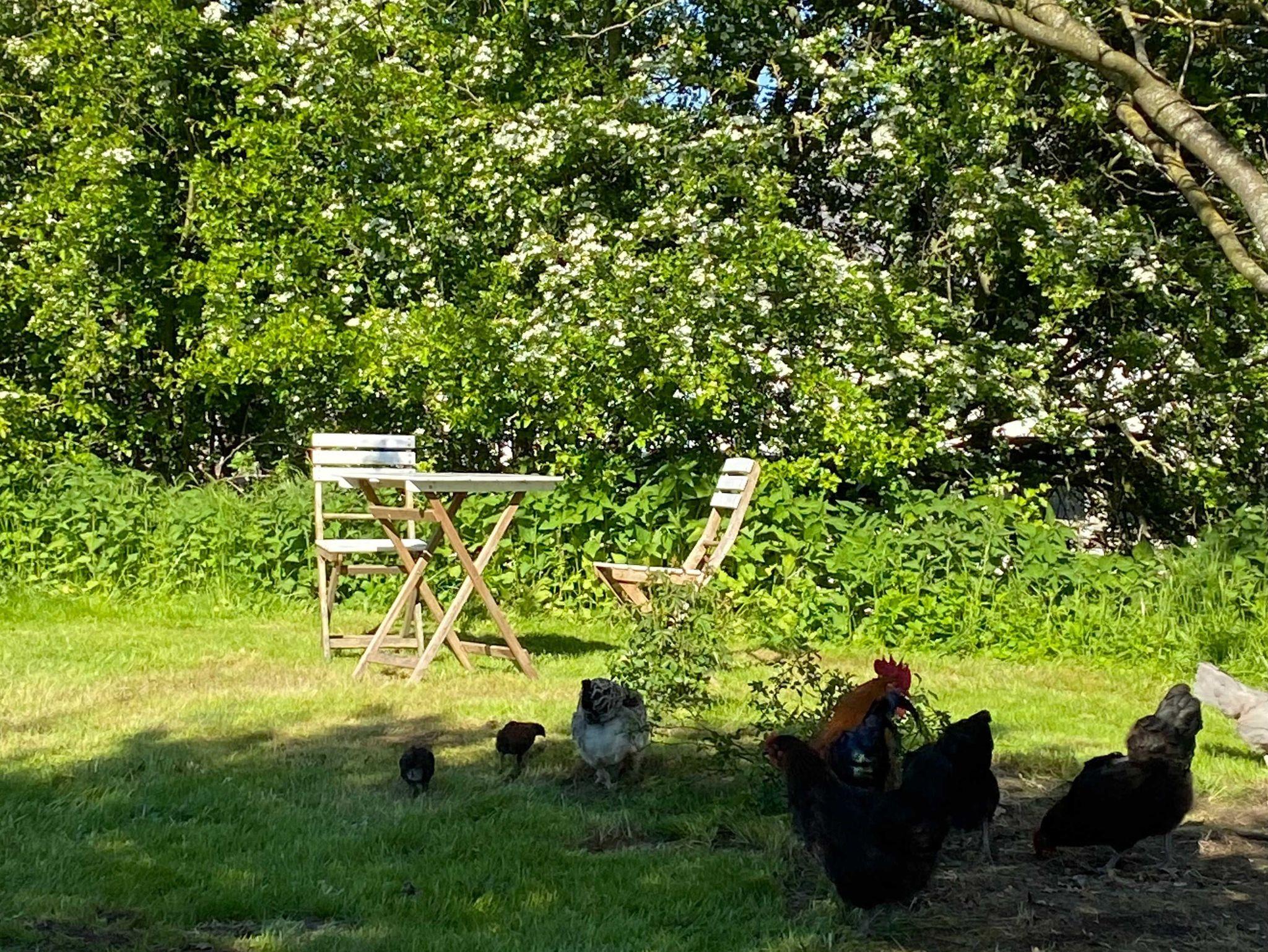 Die Ferienwohnungen umfassen einen offenen Wohn- und Küchenbereich mit einer voll ausgestatteten Küche inkl. Spülmaschine und Backofen, ein gemütliches Sofa und einen Essbereich. Vom Flur aus erreichen sie das Badezimmer mit Dusche und WC sowie die beiden großzügigen Schlafzimmer. Auch hier erwarten Sie altes Fachwerk mit lehmverputzten Wänden und moderne Einrichtungselemente. Im Badezimmer steht Ihnen eine ebenerdige Dusche zur Verfügung sowie Tageslicht. Kinder verbringen bei uns unbeschwerte Ferien! Hier darf auch mal der Minitraktor gefahren werden oder die Schafe gefüttert werden. Unsere Hühner schenken uns jeden morgen frische Eier! Auf dem weitläufige Anwesen, mit insgesamt 22.000 qm Landfläche, finden Sie viele ruhige Ecken, in die Sie sich zurückziehen können und ein Picknick oder einen Grillabend genießen können. Im Spätsommer beobachten Sie den Kranichflug und ganzjährig eine Vielzahl an Tieren wie Feldhasen, Rehe oder auch den Seeadler.