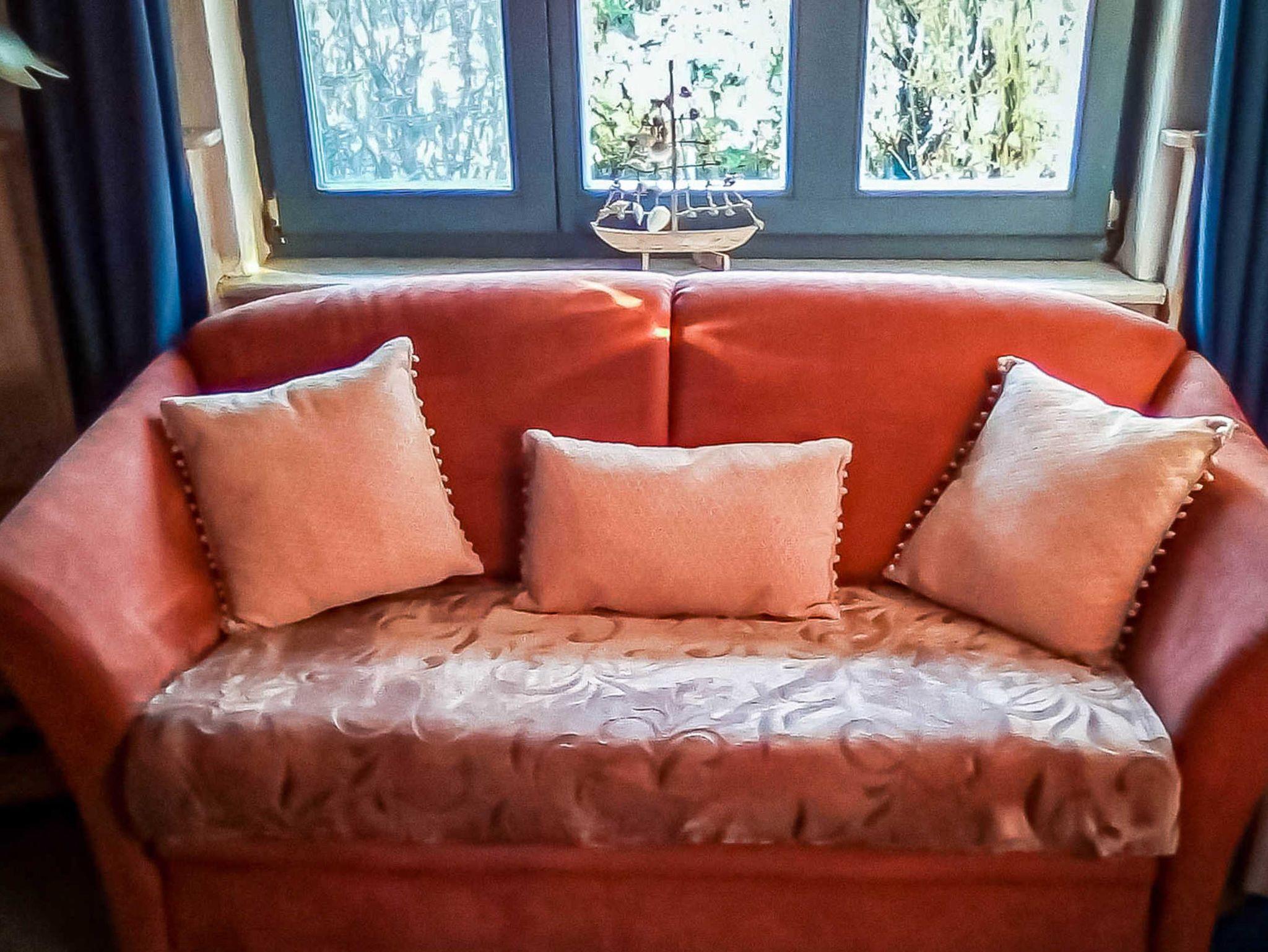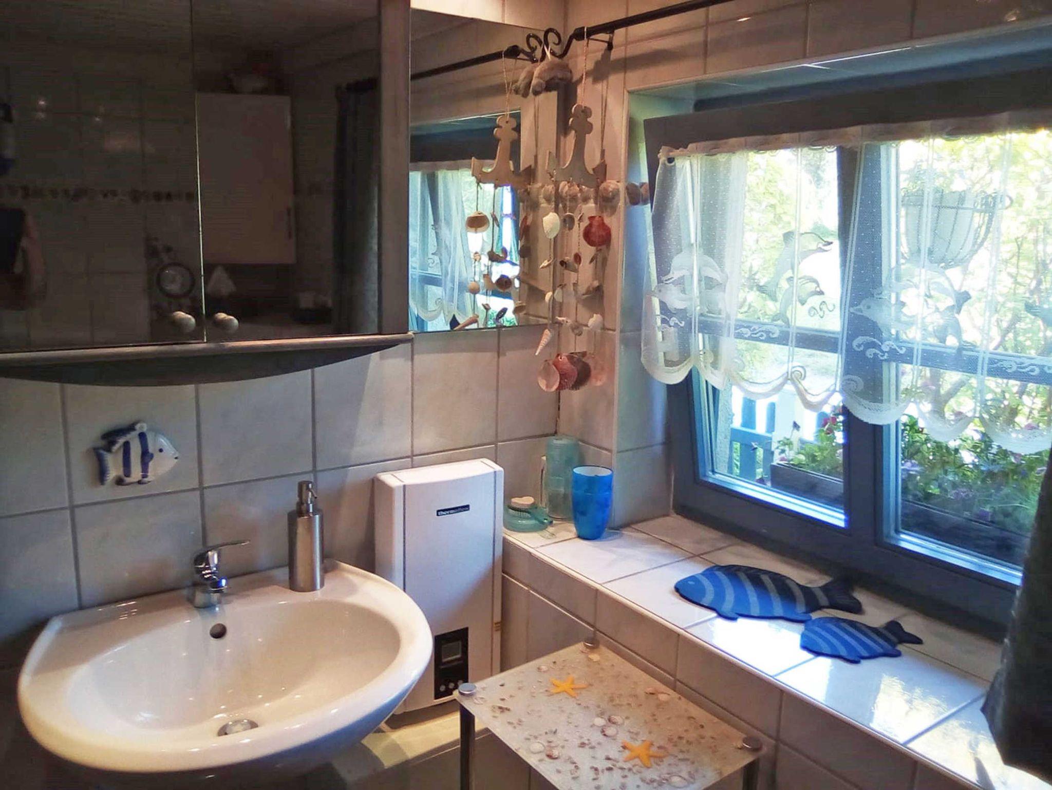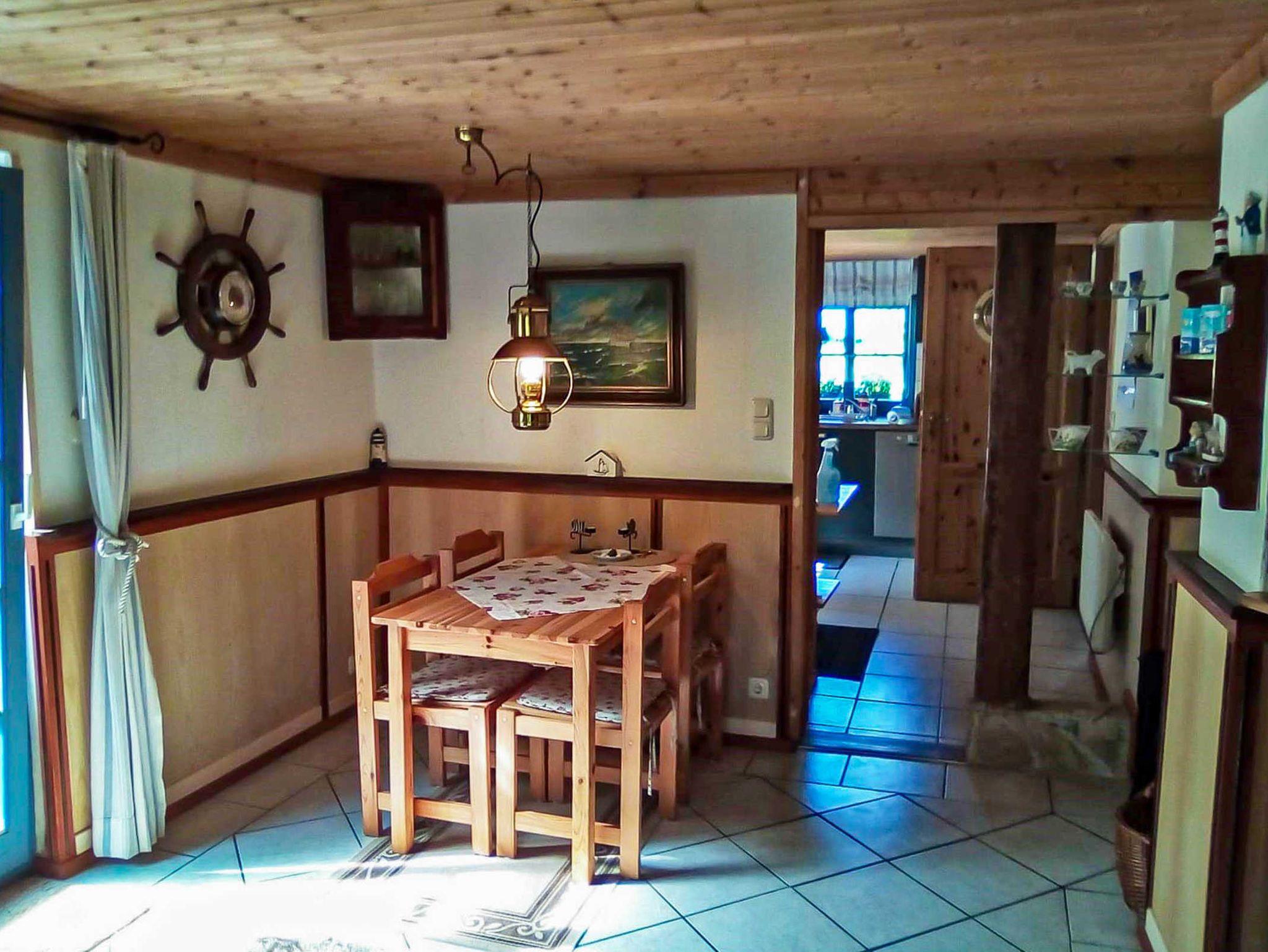 Im Wohnbereich befindet sich auch ein ausziehbares Sofa für max. 2 Personen. Ein weiteres Schlafsofa befindet sich im Schlafzimmer (Kinderaufbettung). Im Schlafzimmer (Doppelbett) überdachen Sie Teile eines alten Fischernetzes. Wenn Sie vom Badetag oder einer Radwanderung nach Hause kommen, können Sie sich unter der Dusche im geräumigen Bad entspannen.