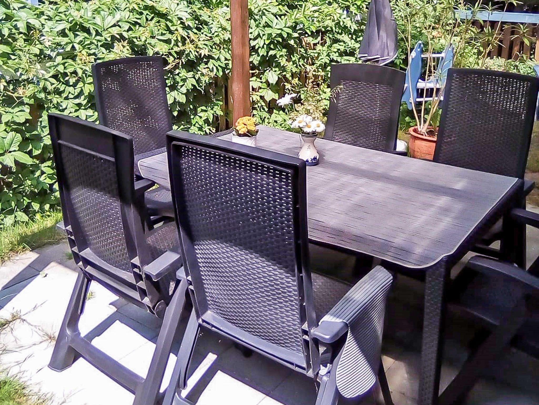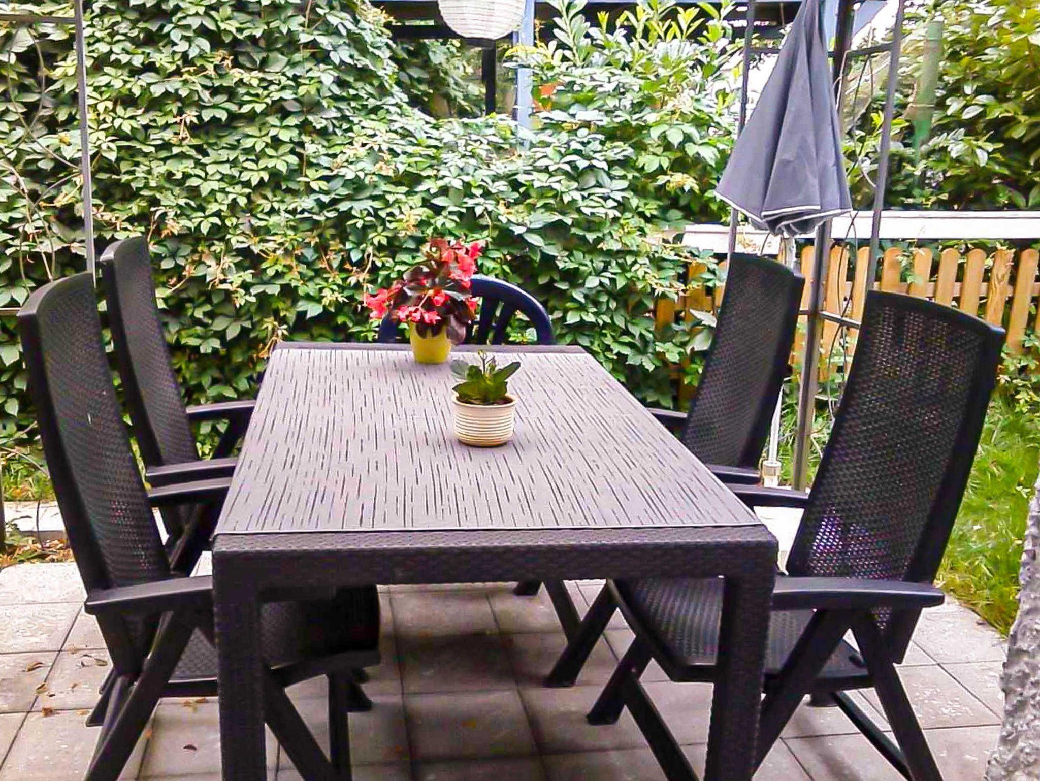 Zur Ferienwohnung gehört eine eigene Terrasse mit Sitzgruppe.