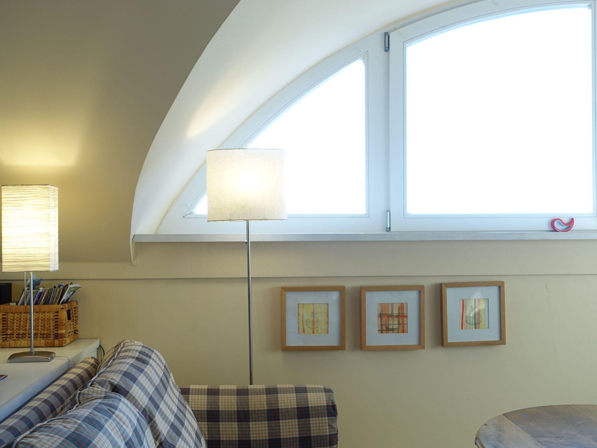 Wohnung im Maisonette Stil mit 2 Räumen und Schlafgallerie ist liebevoll im Landhausstil eingerichtet. Die Lage im Obergeschoss eröffnet den Blick durch das große Rundbogen-Fenster - ein Blick in die abwechlungsreiche havelländische Ur-Landschaft, ausgedehnte Wiesen, Wald, viel Wasser, weitläufige Biotope mit der Vielfalt an Tieren aller Art. Vogelschwärme und Wildtiere sowie die Weite des Himmels mit ihrem Wechsel von Sonne und Wolken lassen sich von hier aus gleichermaßen hören, beobachten und genießen.