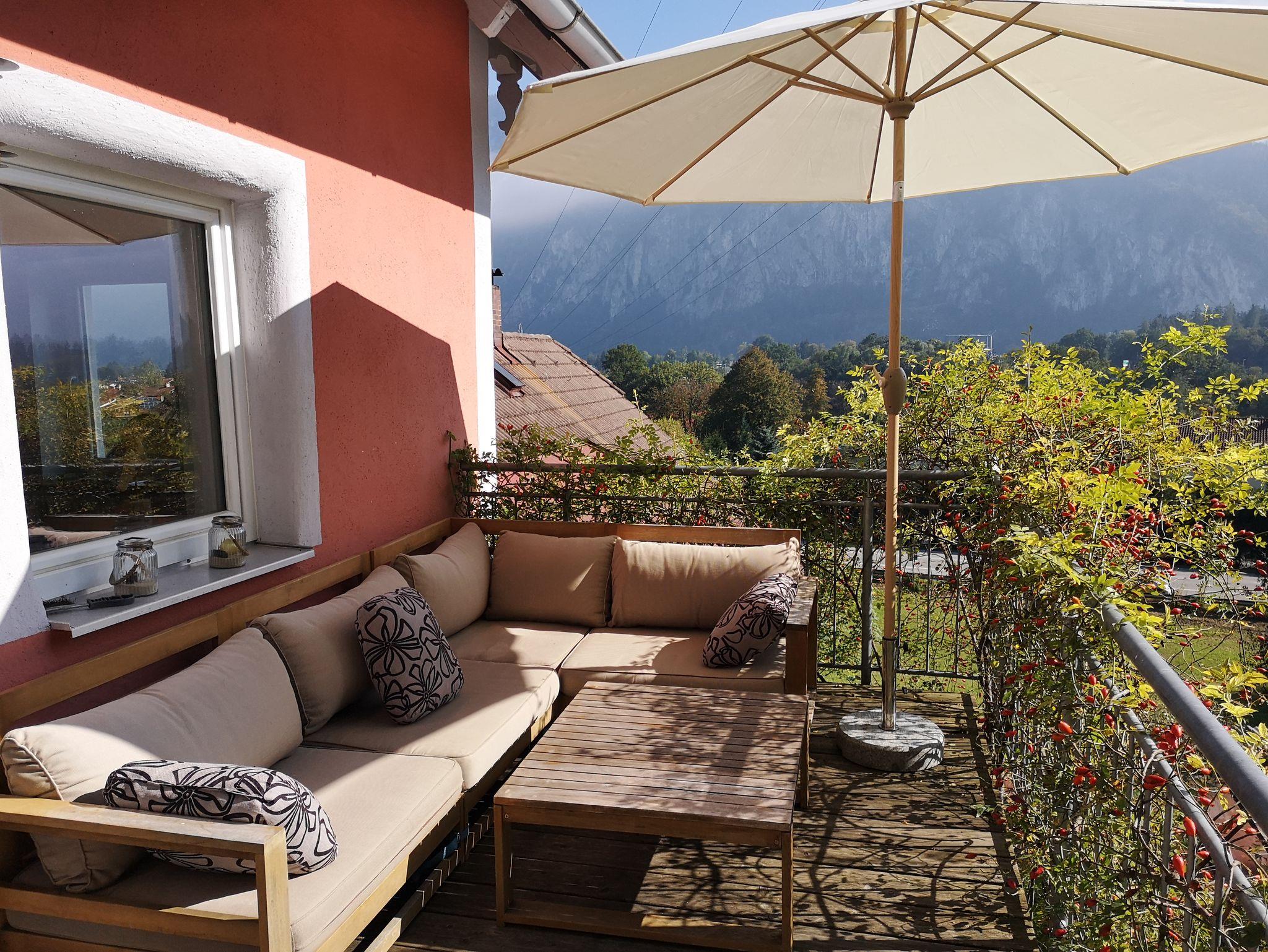 Über einen ca. 30m langen Weg den Hang hinauf kommt Ihr zum Haus und belohnt Euch erst einmal selbst mit einem wunderschönen, weiten Blick auf Kaisergebirge und Inntal.