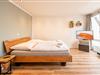 Die moderne Küche ist komplett eingerichtet, und hat alles, was man zum Kochen braucht: Es befindet sich in der Küche eine Geschirrspülmaschine, ein Backofen, ein Kühlschrank mit Gefrierfach und ein Herd. Gläser, Porzellan, Töpfe und Besteck sind für 4 Personen vorhanden. Die Ferienwohnung hat ein gemütliches Doppelbett (Liegefläche 160x200). Die Betten sind bei Ihrer Ankunft bezogen. Im Flur befindet sich ein Kleiderschrank mit Garderobe und eine kleine Abstellkammer.