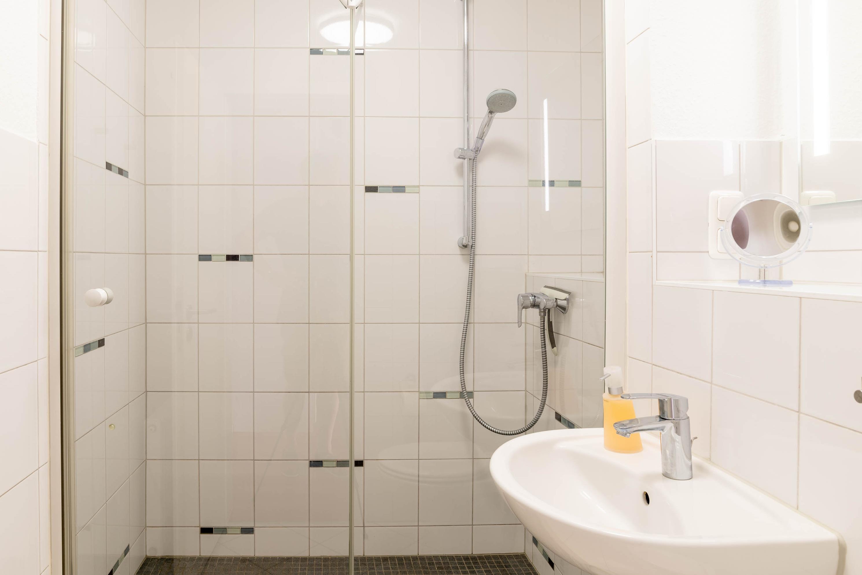 Das gepflegte Duschbad verfügt über einen großzügigen Duschbereich (Walk-in Dusche).