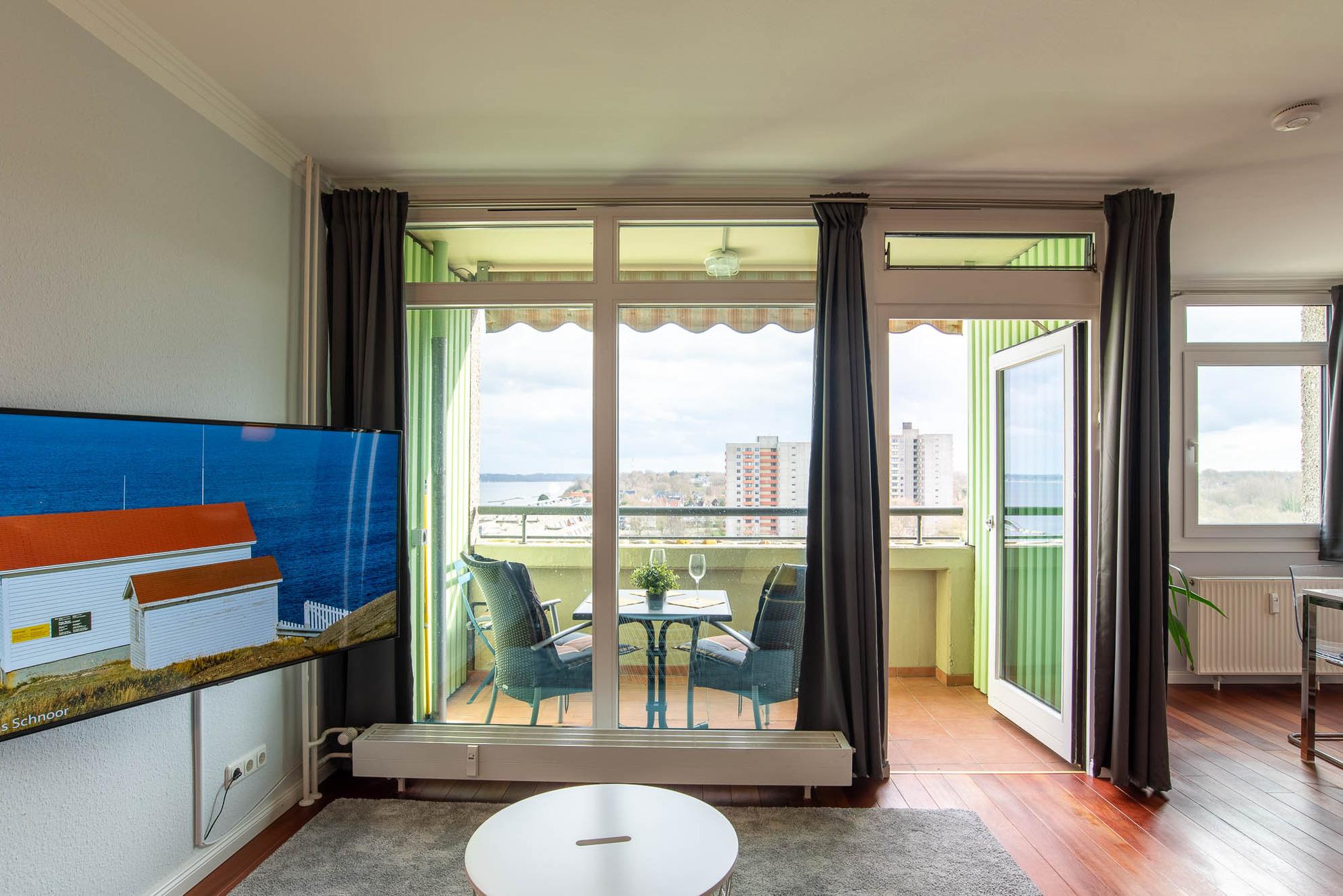 Das Appartement „Seaside“ befindet sich im 10.ten Stock im Olympia Hotel in Kiel Schilksee. 2019 wurde die Wohnung erneuert und geschmackvoll eingerichtet.