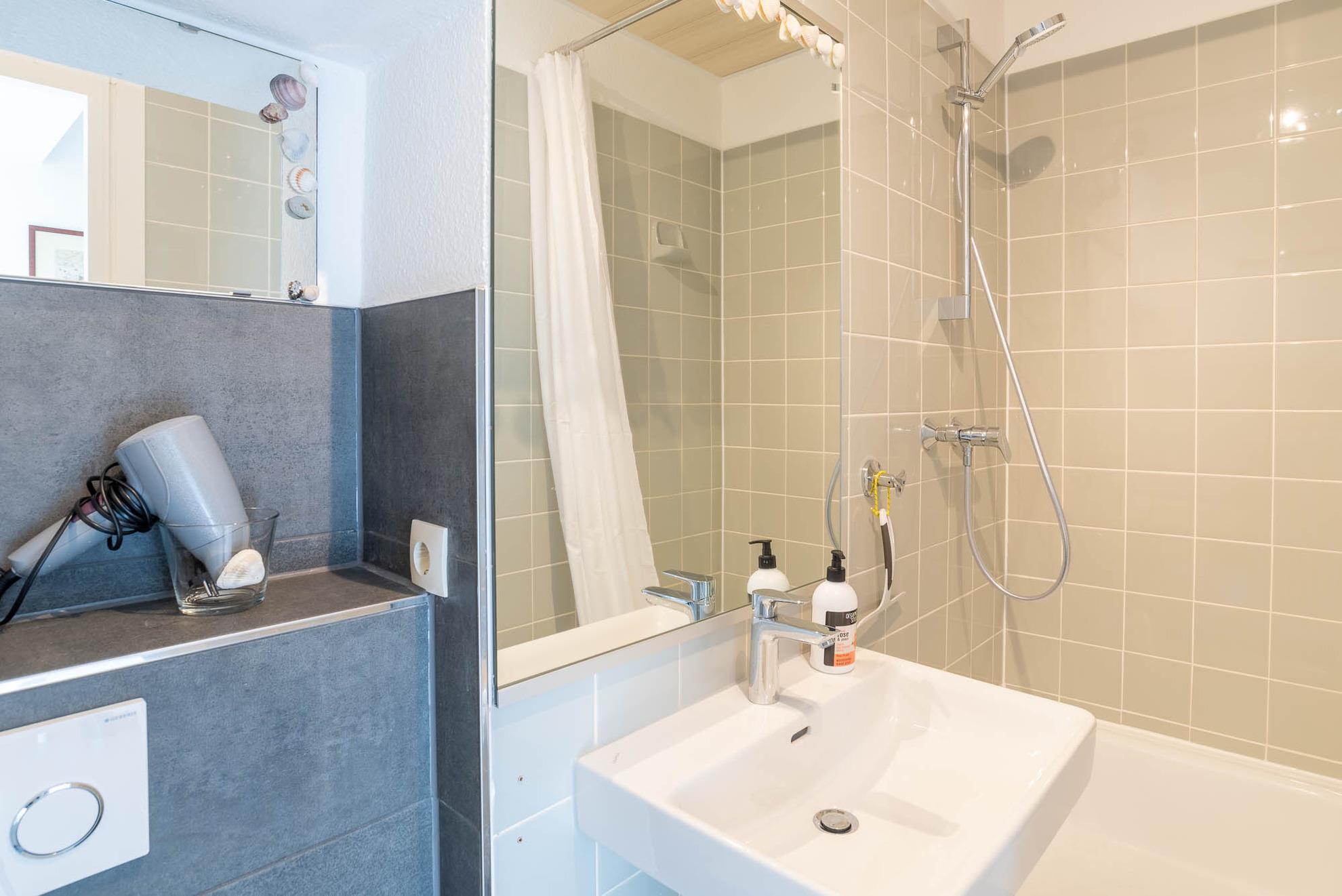 Das Duschbad ist hell und freundlich abgestimmt. Im Flur befindet sich ein großer Schrank, der während Ihres Aufenthalts ausreichend Stauraum bietet.