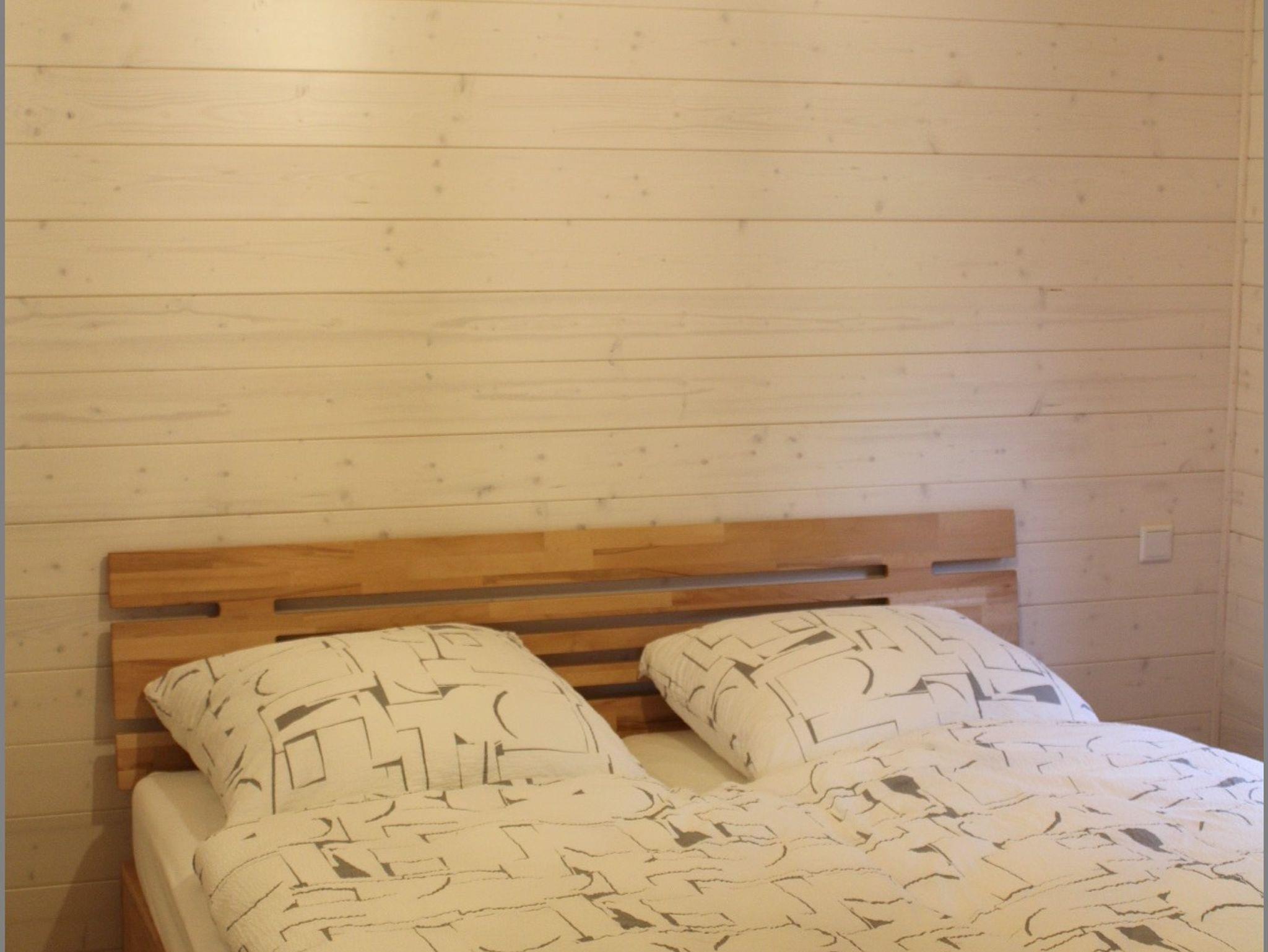 Reservieren Sie sich Ihren Urlaub in unserem Holzhaus (65 m²) und genießen Sie die angenehme Atmosphäre. Die Ausstattung der Räume ist hochwertig, angefangen mit dem offenen, lichtdurchfluteten Wohn-, Koch- und Essbereich über die voll ausgestattete Küche und den beiden ansprechenden Schlafräumen, mit je einem Doppelbett und großem Kleiderschrank. Das Bad verfügt über Dusche, WC, Waschtisch sowie einen Waschtrockner. Unsere überdachte Terasse bietet Ihnen großzügig Platz und schützt Sie vor Sonne und Regen.
