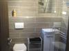 barrierefreie Dusche mit zusätzlicher Regendusche, WC, Waschbecken, Radio, Spiegel, Durchlauferhitzer und Elektroheizung