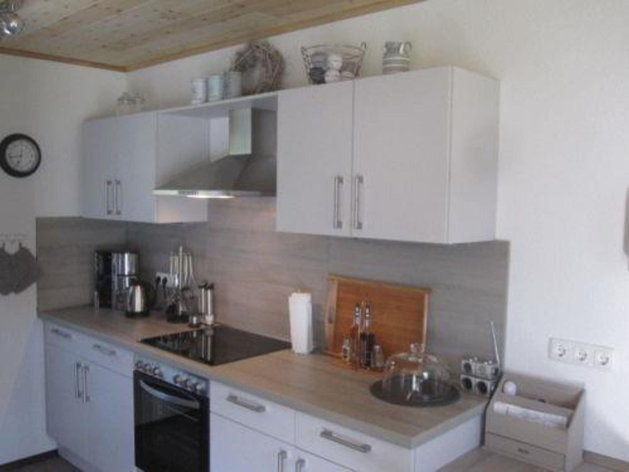 Backofen, Spülmaschine, Kühlschrank,Dunstabzugshaube, Kaffeemaschine, Toaster, Eierkocher, Sandwichmaker, Saftpresse, Stabmixer, Küchenreibe, Küchenwaage, Raclette, WMF Topfset + Besteck, Pfanne, Geschirr + Gläser, Küchenmaschine, Esstisch angrenzend an Küche, moderner Flachbildschirm Sateliten TV, 2 x Relax-Sessel mit Tisch und Leselampen, gemütlicher Schwedenofen