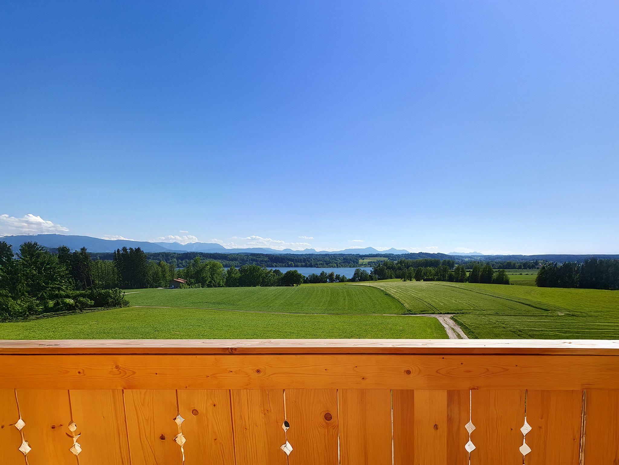 Ein großer Balkon mit Blick ins Grüne und den Waginger See rundet das Wohnerlebnis ab – ideal für einen entspannten Start in den Tag oder einen ruhigen Abend bei einem Glas Wein.