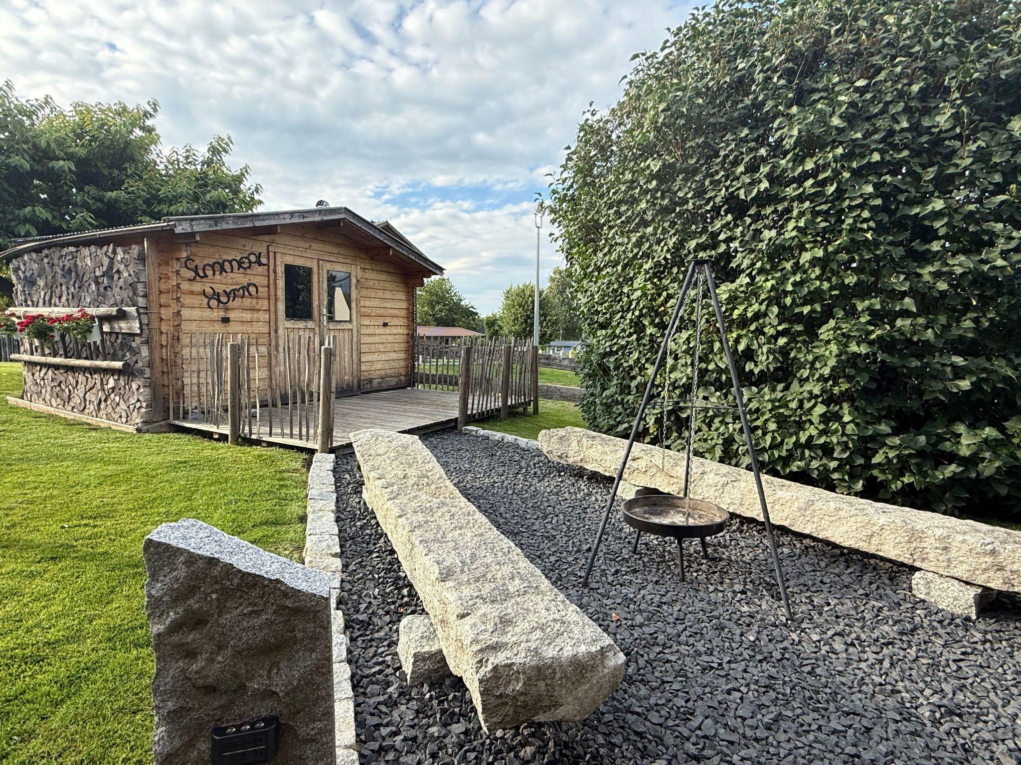 Outside the holiday home there is a children's playground with a swing. There is also a barbecue area and a wooden terrace with garden furniture on the south side of the house.