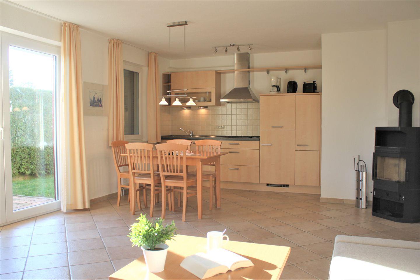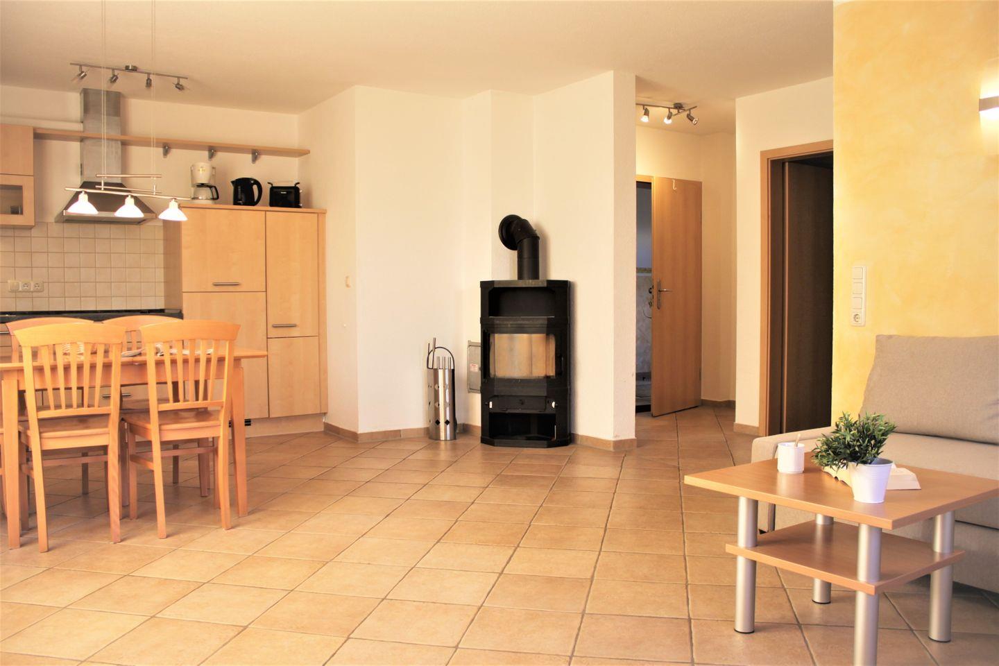 Freundlich eingerichtete Erdgeschosswohnung für bis zu 4 Personen im Herzen von Kirchdorf gelegen. Der offen gestaltete Wohn- und Essbereich bietet viel Helligkeit und einen Zugang zur saisonal möblierten Terrasse auf der Sie entspannte Stunden verbringen können. Ein komfortables Sofa mit TV-Gerät, WLAN und Kaminofen zum Relaxen, ein großzügiger Esstisch und die integrierte Küche bieten Ihnen alles was Sie für einen schönen Aufenthalt benötigen. In der Küche finden Sie viele technische Geräte und ausreichend Geschirr und Besteck um sich bestens selbst zu versorgen.