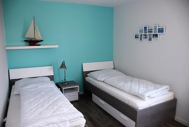 Die Wohnung bietet Ihnen außerdem zwei separate gemütliche Schlafzimmer, die entweder mit einem Boxspringdoppelbett oder zwei Einzelbetten möbliert sind. Genügend Stauraum für Ihre Garderobe ist ebenfalls vorhanden.