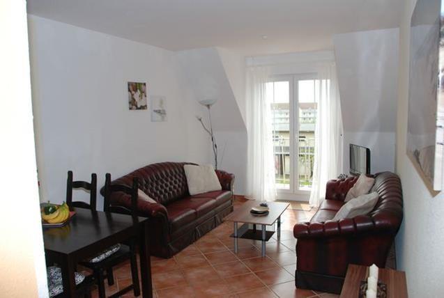 Das kombinierte Wohn- und Esszimmer ist mit einer Couch, einem TV-Gerät und einem Esstisch gemütlich möbliert. Außerdem befindet sich hier auch der Zugang zum saisonal möblierten Balkon. Die Küche ist integriert und unter anderem mit Kühlschrank mit Gefrierfach, Mikrowelle, Herd, Kaffeemaschine und vielem mehr ausgestattet und ermöglicht eine gute Selbstverpflegung.
