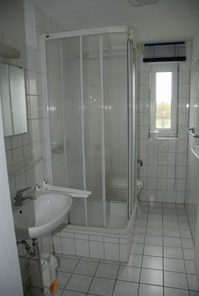 Das Badezimmer mit Fenster bietet Ihnen eine Dusche, einen Waschtisch und ein WC.
