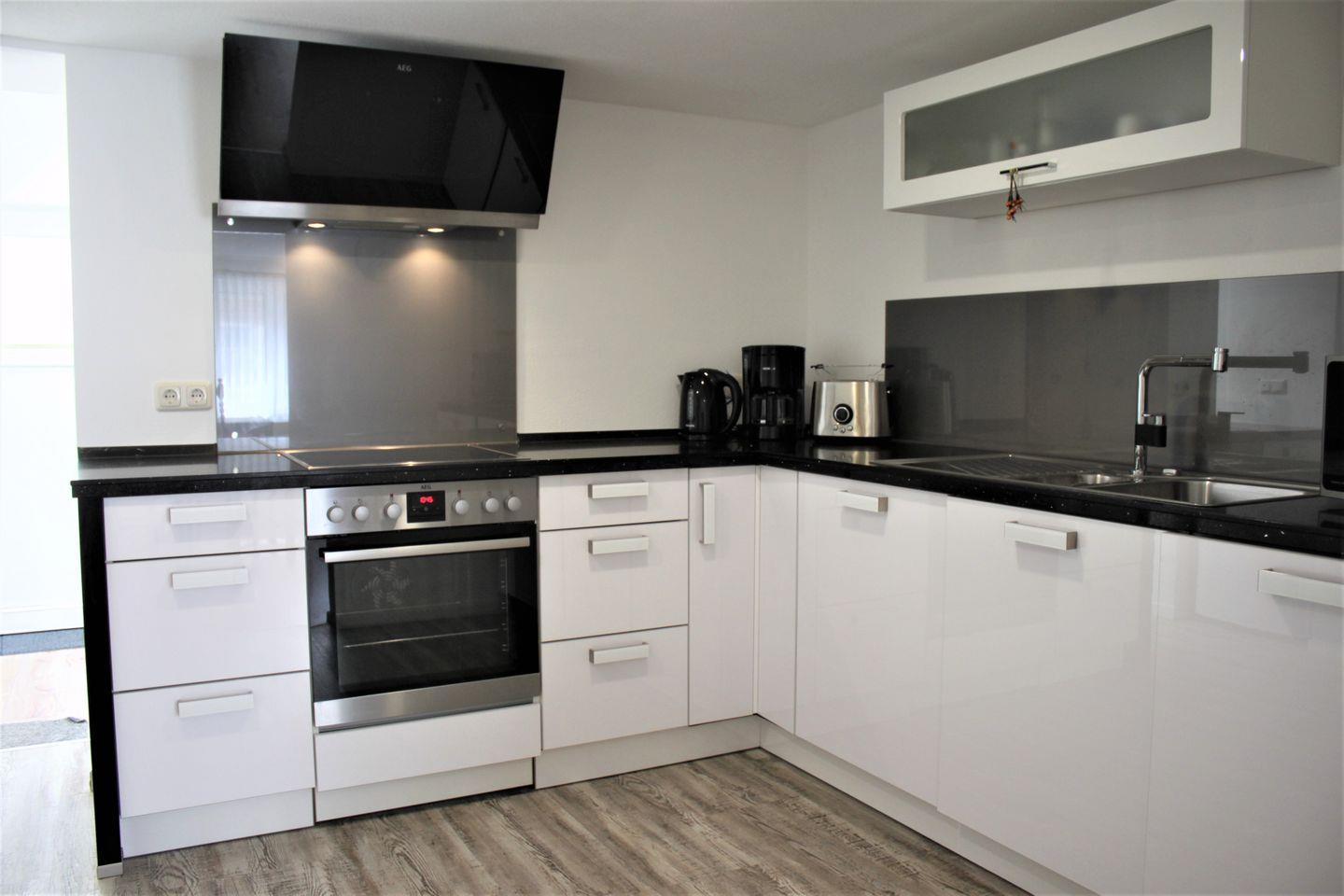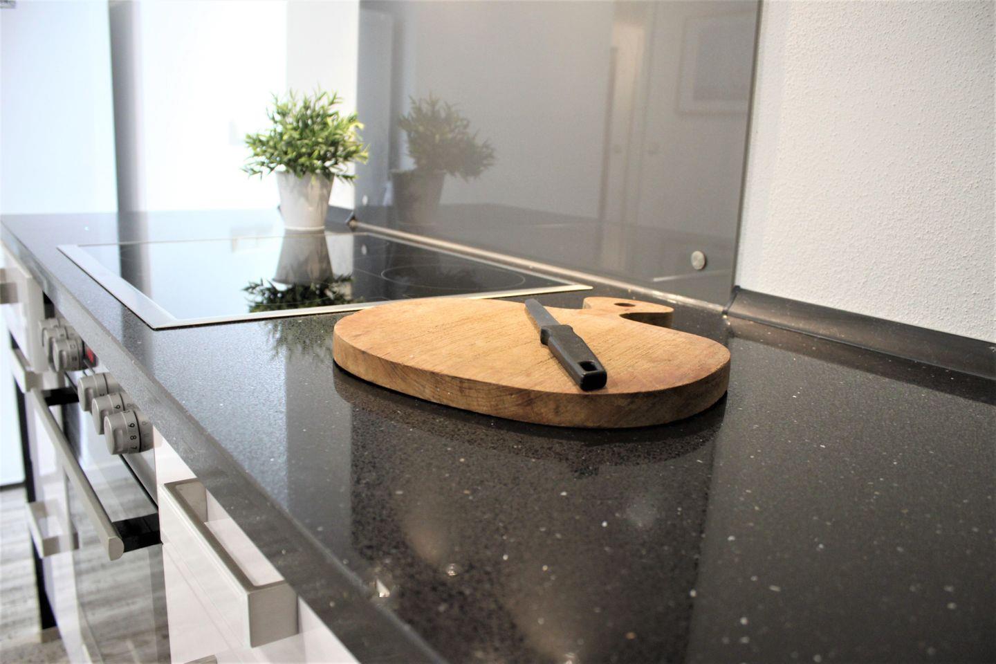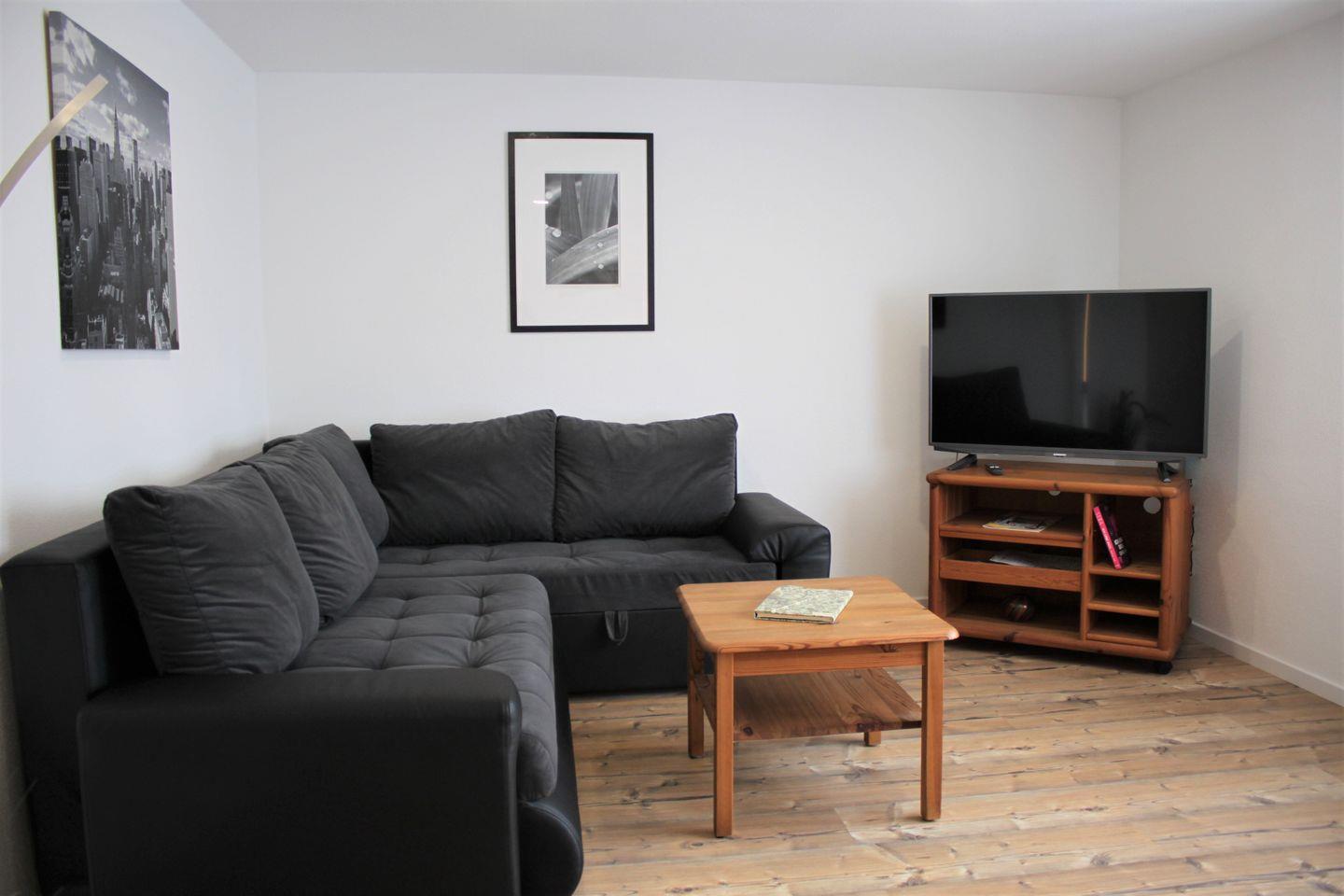 Das Wohnzimmer bietet Ihnen eine komfortable Couch mit TV-Gerät und Esstisch. Angrenzend, in offener Bauweise befindet sich die moderne, hochwertige Küche, die über viele technische Geräte verfügt. Dazu gehören z.B. ein Kühlschrank mit Gefrierfach, ein Herd mit Backofen, eine Geschirrspülmaschine, Wasserkocher, Kaffeemaschine und Toaster.