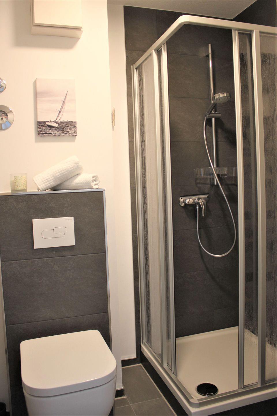 Im schönen Badezimmer verfügen Sie über eine Dusche, einen Waschtisch, Föhn und WC.