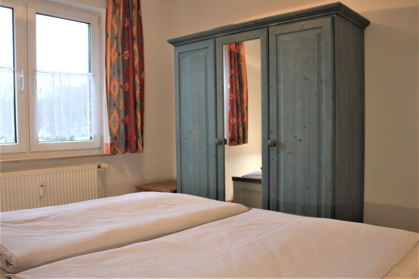 Die zwei separaten Schlafzimmer sind entweder mit einem komfortablen Doppelbett und Kleiderschrank oder einem Etagenbett und Kleiderschrank möbliert und ermöglichen erholsame Nächte.