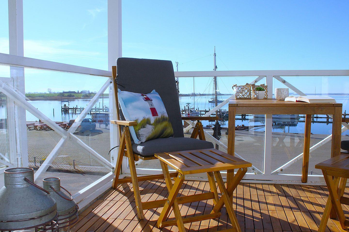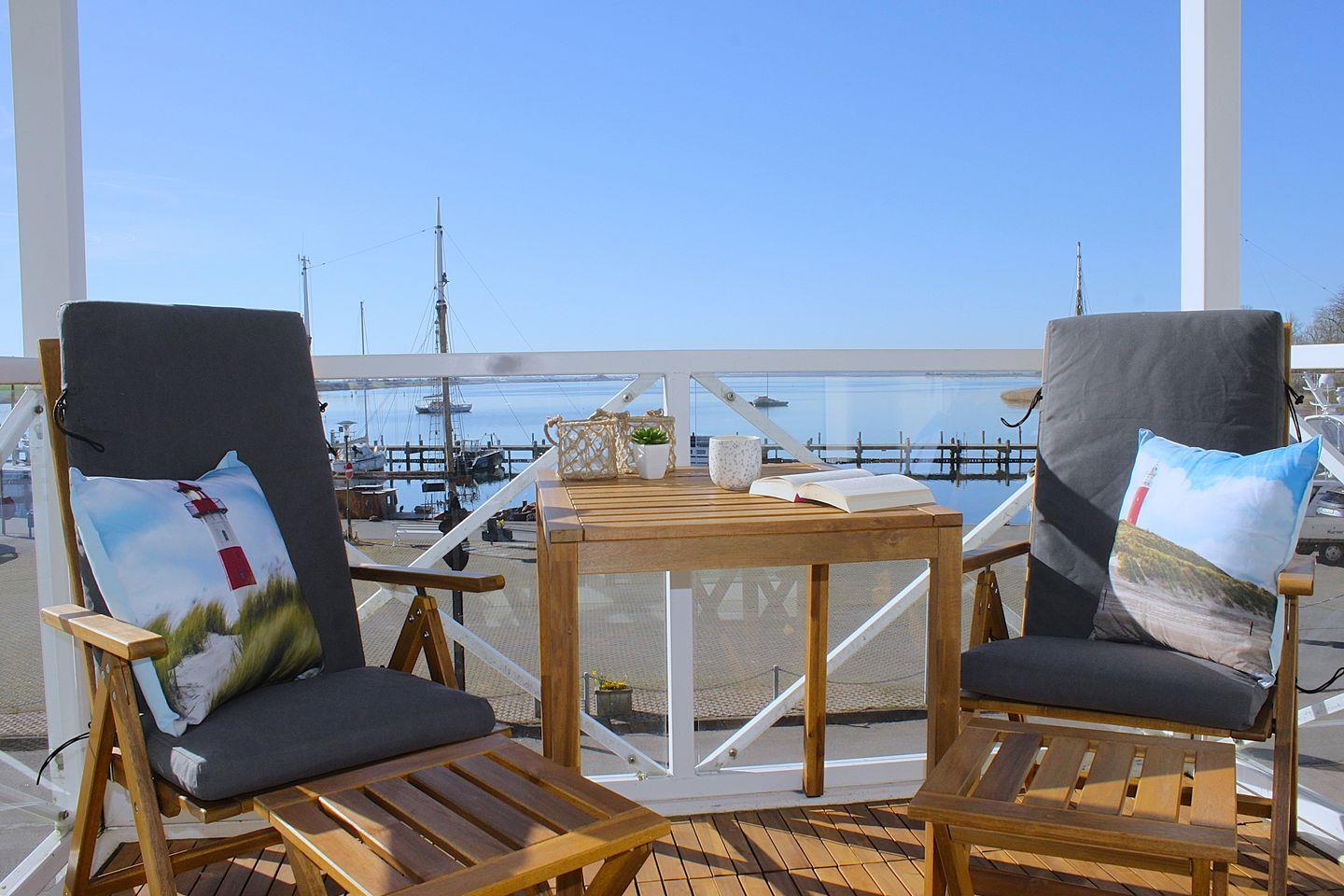 Die Ferienunterkunft Lütt Hafenkieker im ersten Stock bietet auf 48 m² einen außergewöhnlich guten Meer- und Landschaftsblick, einen überdachten Balkon, ein Schlafzimmer, eine offene Küche mit moderner Ausstattung sowie ein gemütliches Wohnzimmer. WLAN, ein Privatparkplatz, Zentralheizung und Sichtschutz an allen Fenstern sorgen für Komfort. Haustiere sind auf Anfrage gestattet.