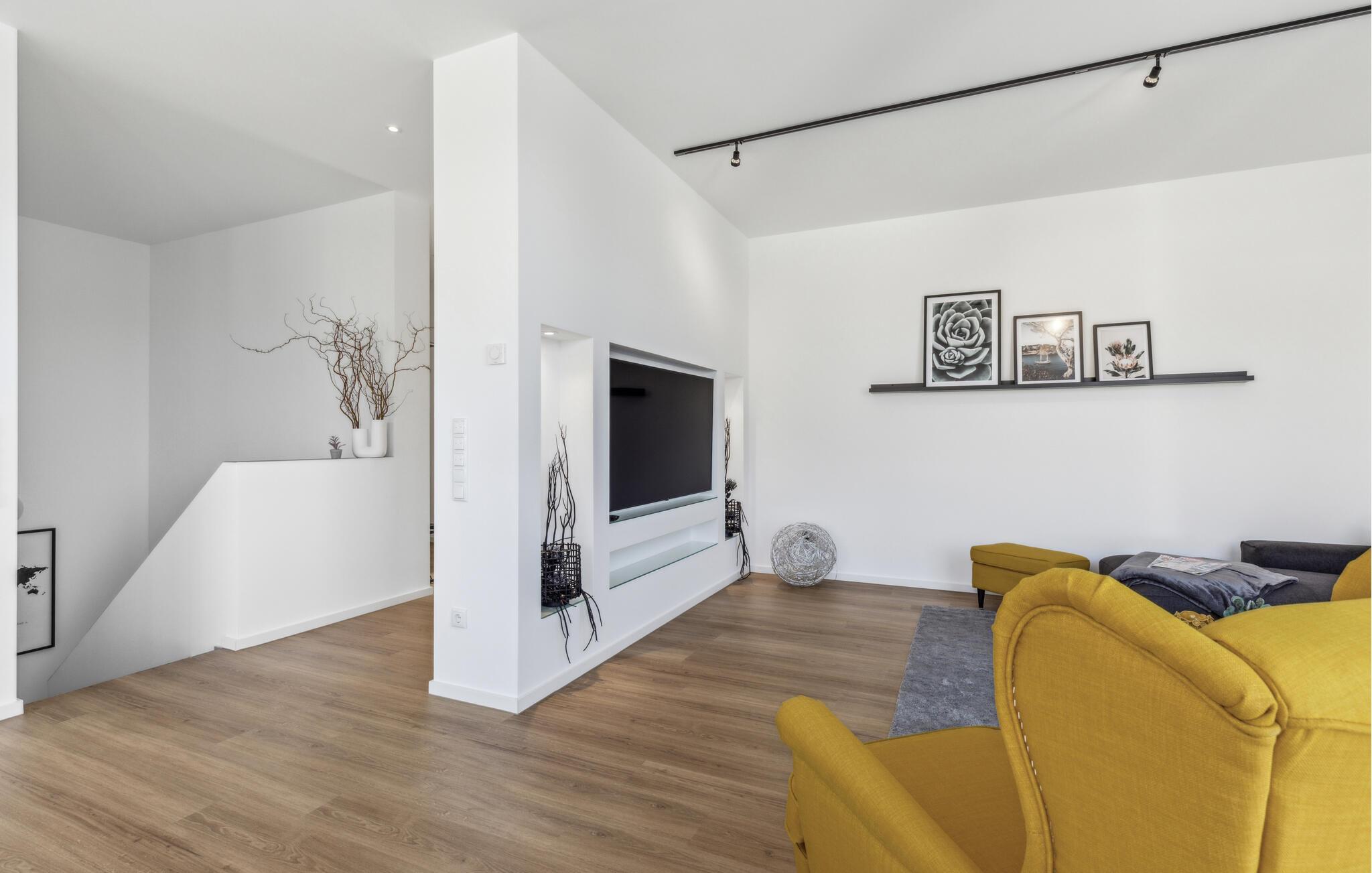Nyd moderne arkitektur, vid udsigt over naturen og skønne udflugtsmål i dette feriehus.