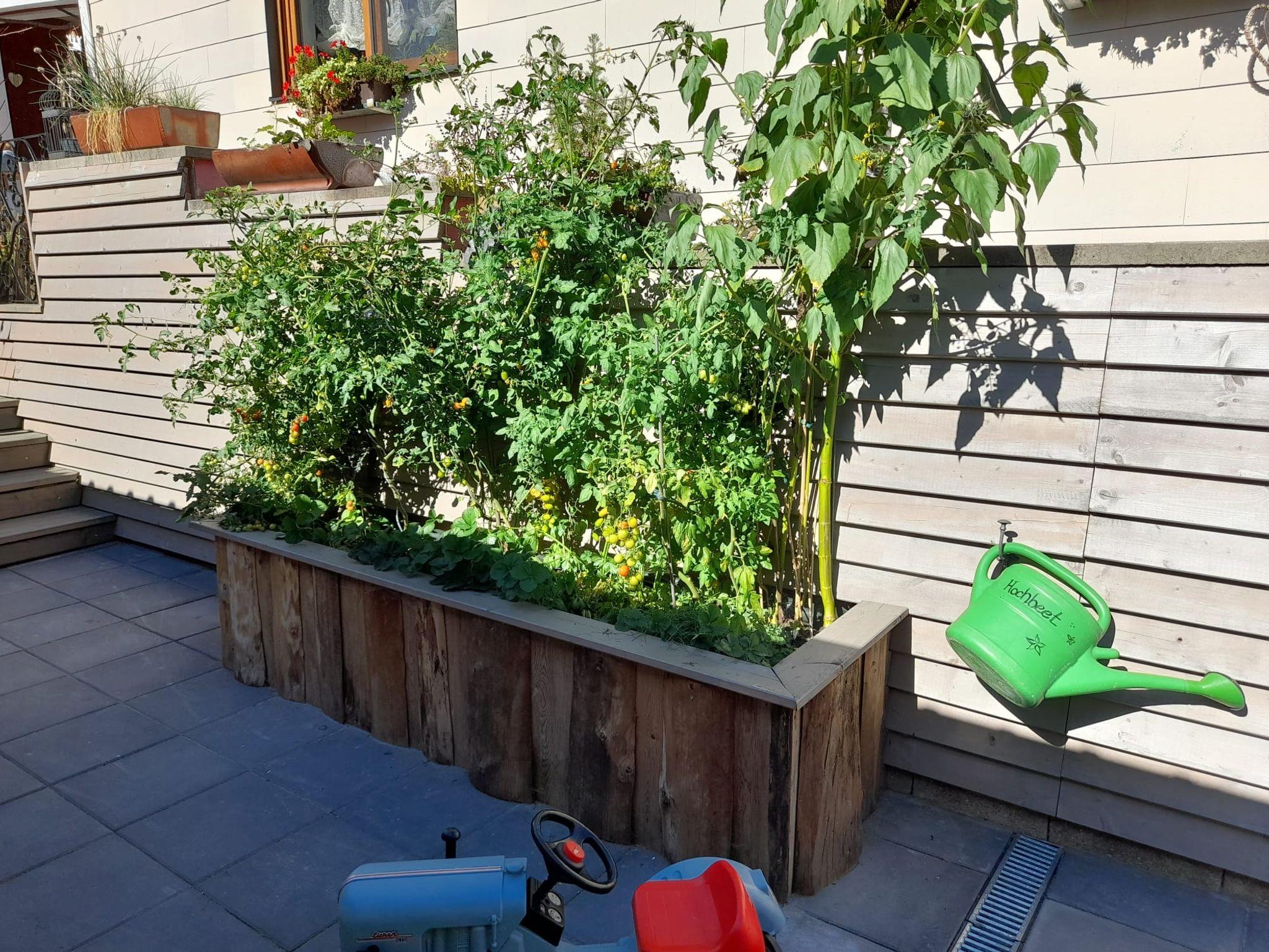 Im Hochbeet warten Saisonabhängig, Tomaten, Gurken, Salat, Erdbeeren, Himbeeren und diverse Kräuter auf Sie.