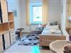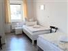 Die Wohnung hat drei Schlafzimmer wovon eines mit einem Doppelbett (180/200)und einem Kinderbett ausgestattet ist und davor ist ein kleiner Balkon mit Blick auf den Wald. Das zweite Schlafzimmer ist ein Einbettzimmer (90/200) mit Waschbecken. Das dritte Schlafzimmer ist mit hintereinander stehenden Betten (90/195 unten offen) ausgestattet die nicht zusammengestellt werden können. Zur Erstausstattung gehören Bettwäsche und Handtücher.
