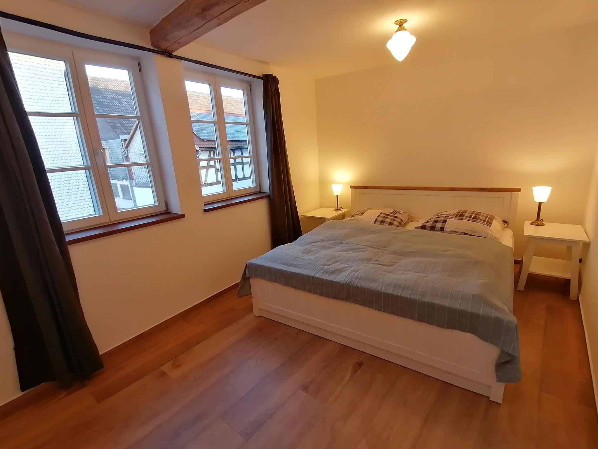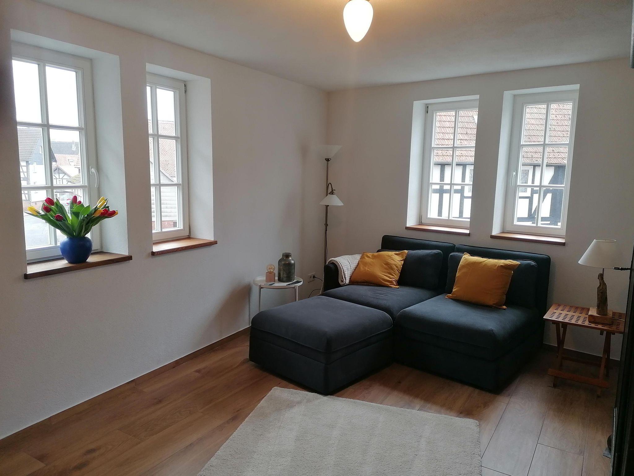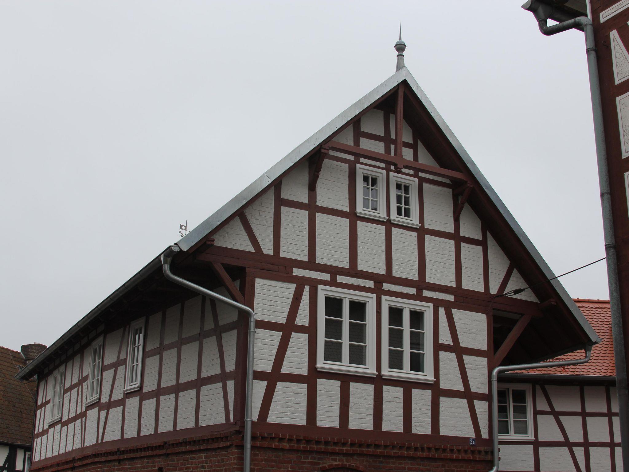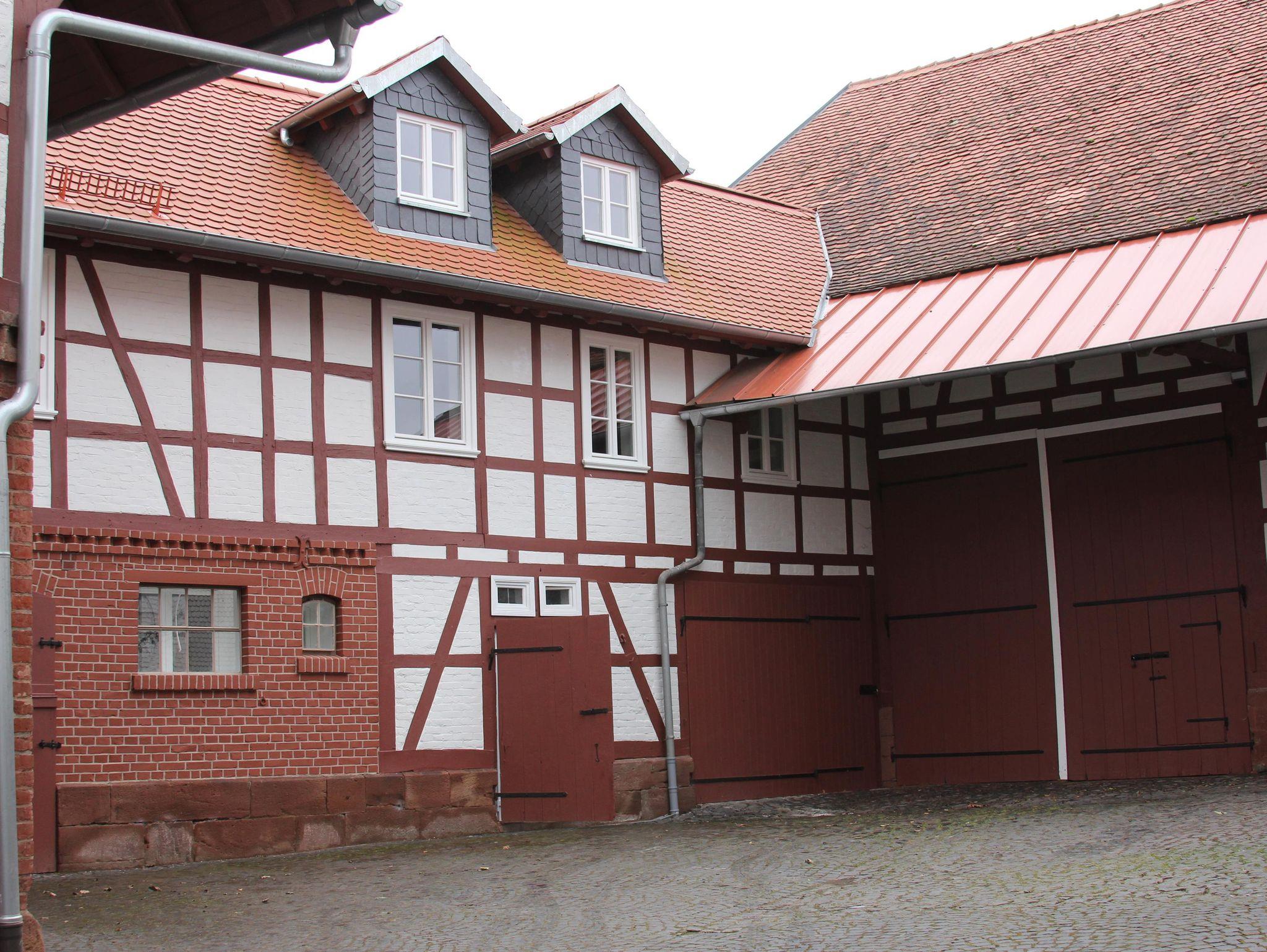 Denkmalgeschützter Vierseitenhof von 1860 mitten in Großseelheim, 2 Ferienwohnungen (65 bzw. 55 qm) mit jeweils einer Galerie (60 bzw. 40 qm), die über den ehemaligen Stallungen neu gebaut und 2023 vollendet wurden. Die Stallungen wurden zu Eingangsbereichen und einem Technikraum umgebaut. Die Beheizung erfolgt über eine Wärmepumpe mit Fussbodenheizung und Photovoltaik.