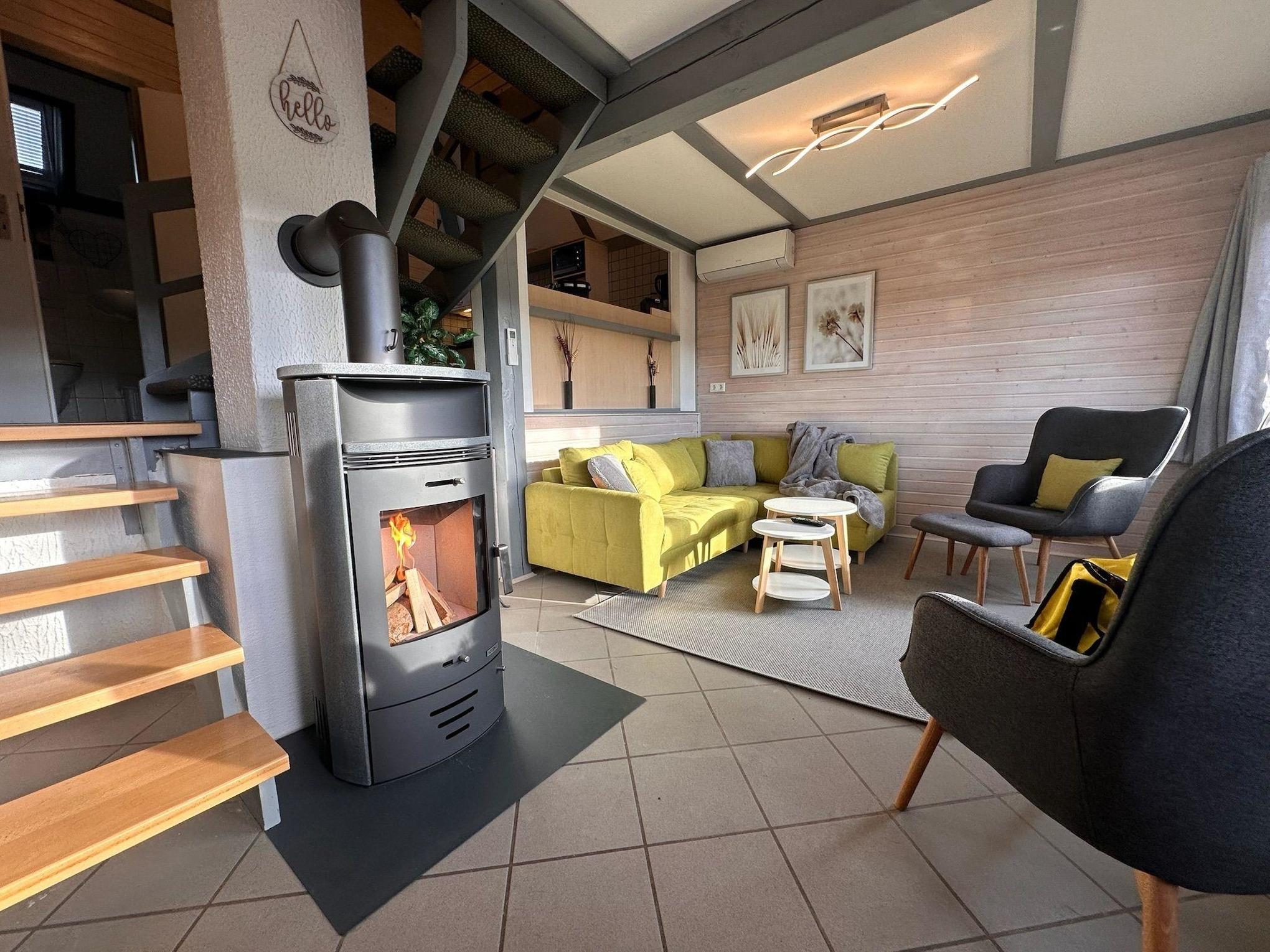 Im Wohnbereich erwartet dich eine gemütliche Sitzecke mit Satelliten-TV, Fire TV Stick und Radio. Ein Kaminofen sorgt für behagliche Wärme. Der große Esstisch bietet Platz für 6 Personen und ein Kinderhochstuhl steht ebenfalls zur Verfügung.