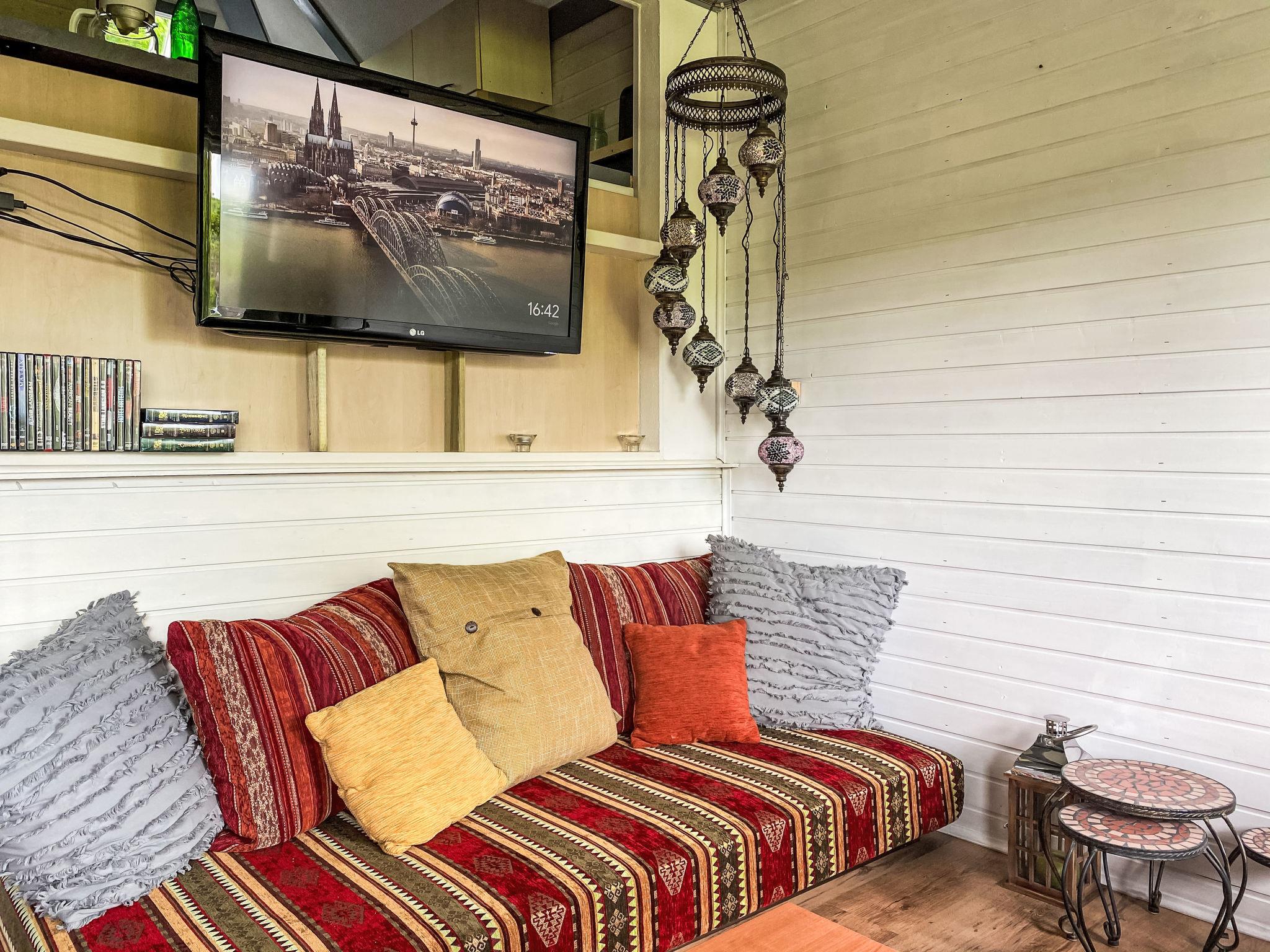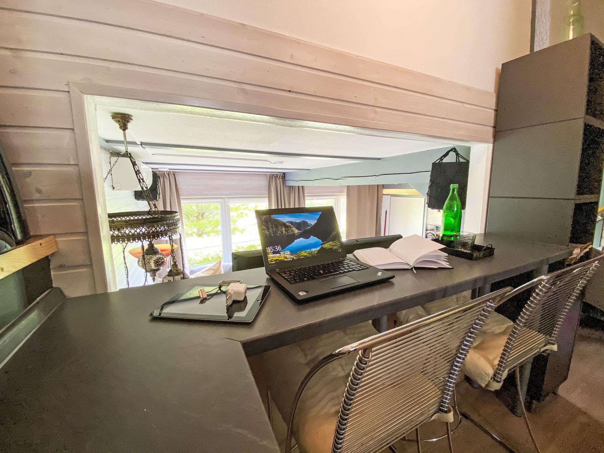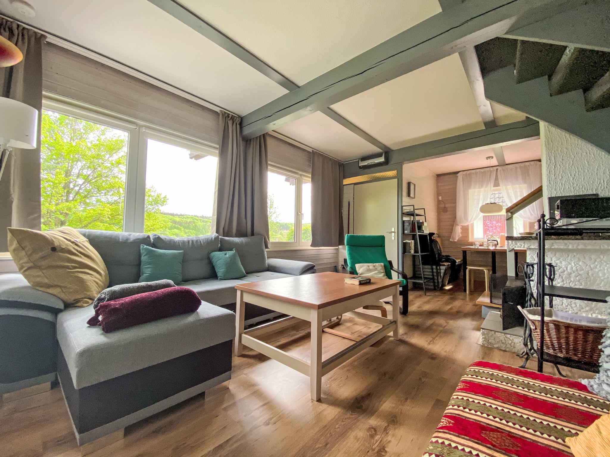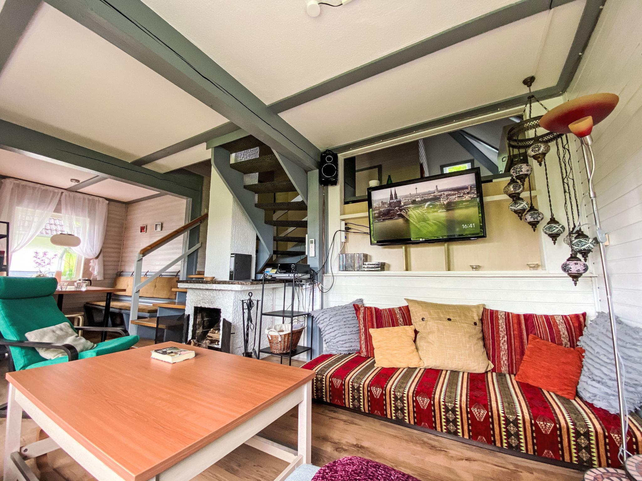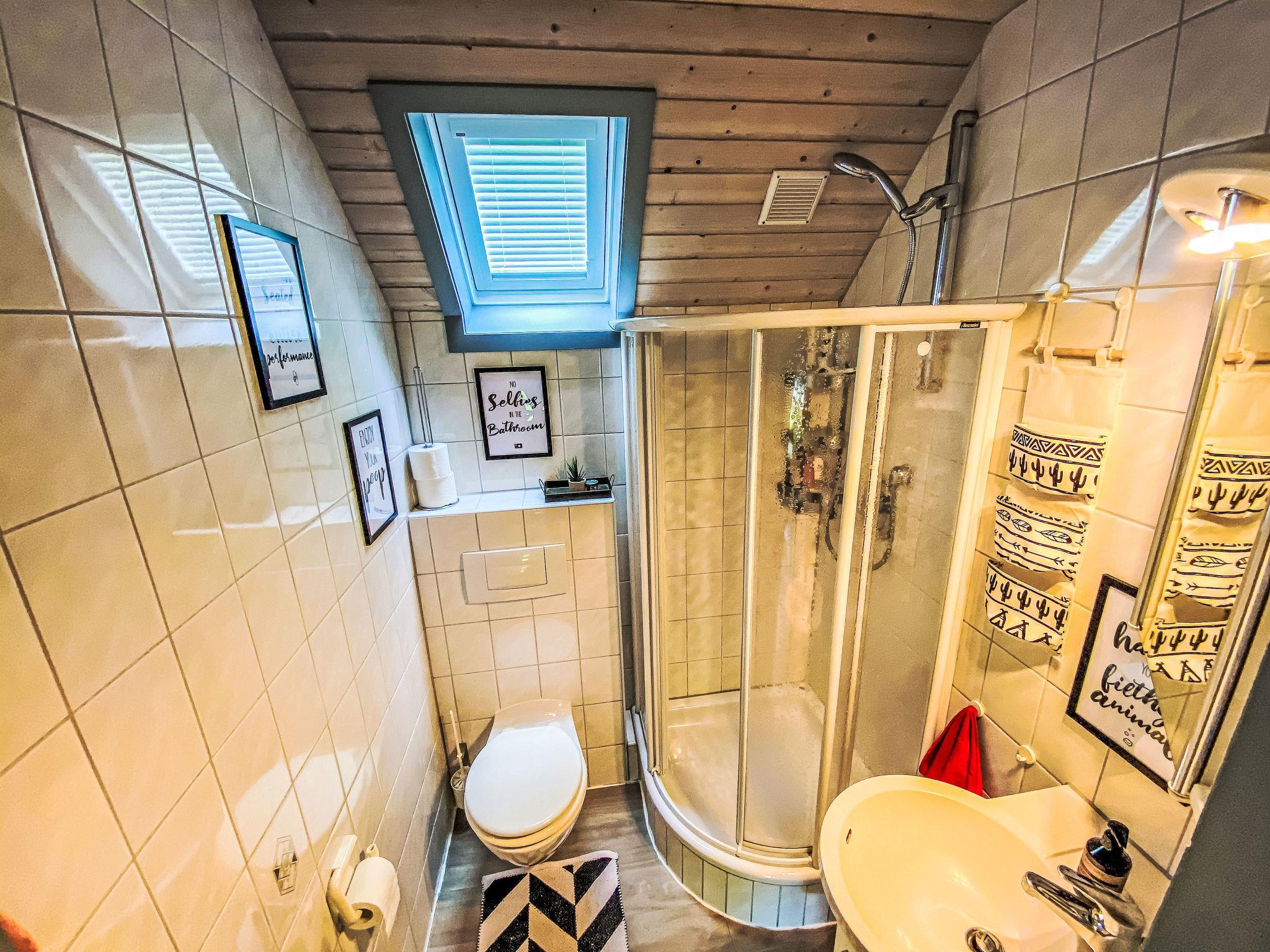 "LoLa", 4-room house 75 m2 on 2 levels. Cosy furnishings: living/dining room with open-hearth fireplace and satellite TV (flat screen), DVD. Exit to the terrace. 1 room with 1 double bed. Open kitchen (oven, dishwasher, 4 ceramic glass hob hotplates, kettle, microwave, electric coffee machine). Shower/WC, sep. WC. Upper floor: (spiral staircase), 1 room with sloping ceilings with 1 double bed. Exit to the balcony. 1 room with sloping ceilings with 2 beds and hand-basin. Exit to the balcony. Electric heating. Small balcony, terrace partly roofed. Terrace furniture, balcony furniture, barbecue. Beautiful view of the lake. Facilities: children's high chair, baby cot. Internet (WiFi, free). Please note: non-smoking house. Smoke alarm, fire extinguisher. Na parterze pokoje polaczone sa schodami (pólpietra).
