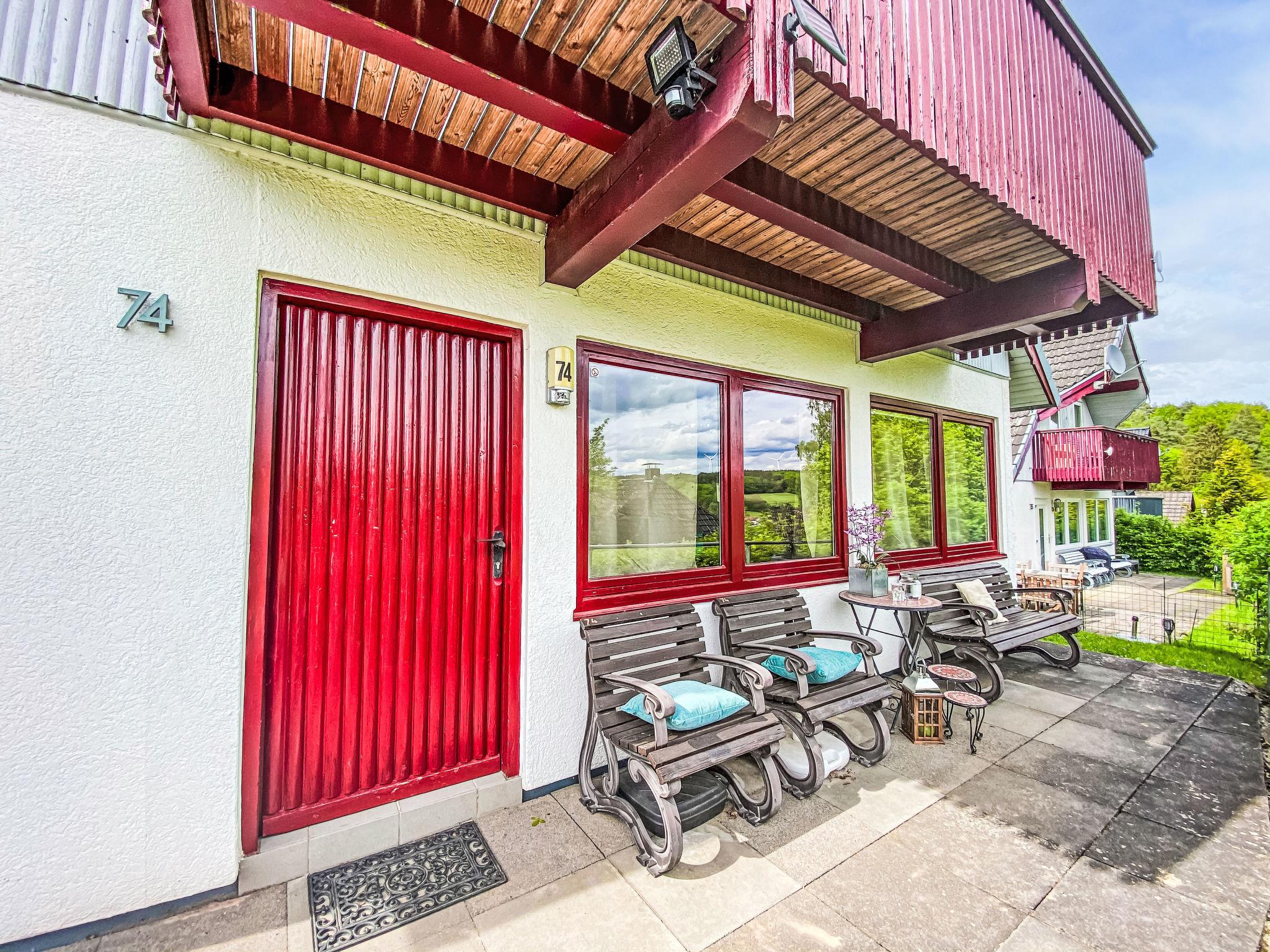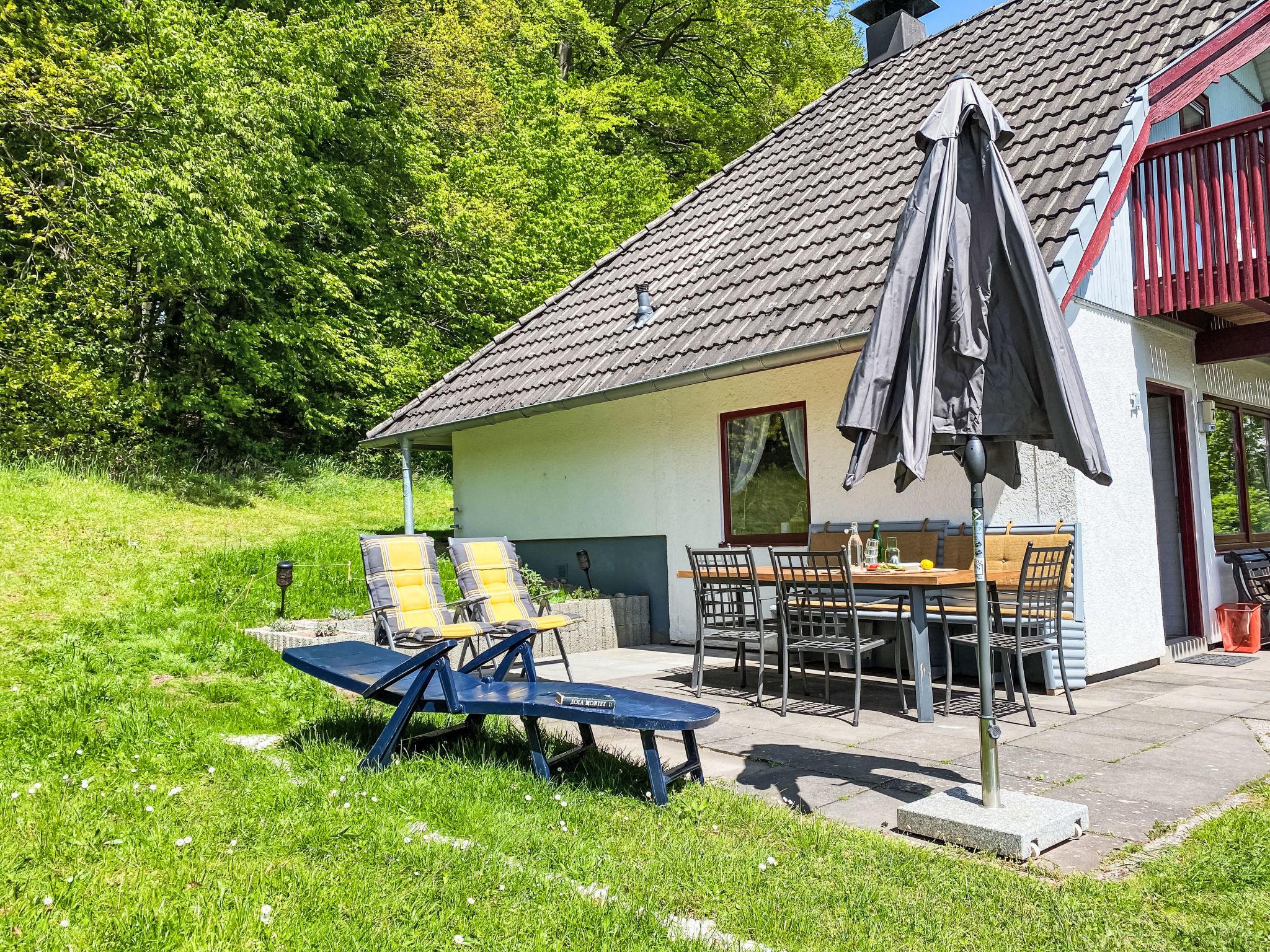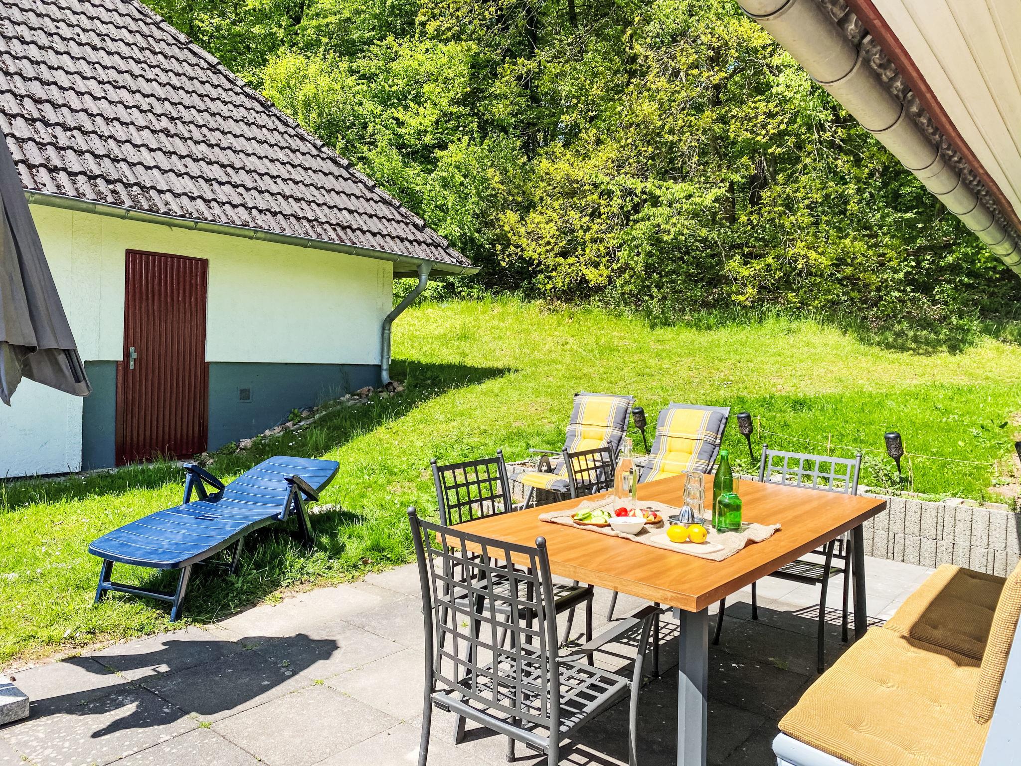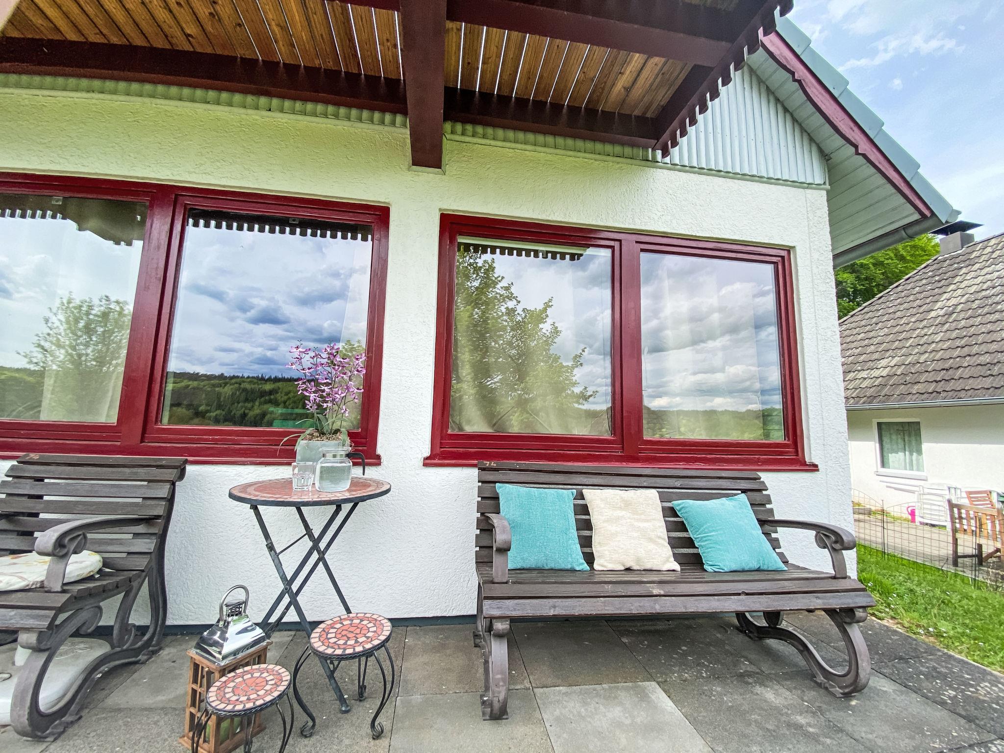 Holiday village "Seepark Kirchheim". Outside the resort, 4 km from the centre of Kirchheim, in a quiet, sunny position on a slope, on the lake, in the countryside. Public parking on the road. Shop 4 km, supermarket 4 km, shopping centre 4 km, bakery 4 km, café 400 m, bus stop 400 m, railway station "Bad Hersfeld" 15 km, outdoor swimming pool 4 km, thermal baths 15 km. Golf course (18 hole) 4 km, tennis 10 km, minigolf 15 km, walking paths from the house 300 m. Well-known lakes can easily be reached: Stausee 500 m. Please note: car recommended. The owner does not accept any youth groups. The Seepark is divided into four “villages” with a total of 139 holiday homes, which are grouped around the reservoir (10 hectares of water, bathing, water skiing, sunbathing area). Route around lake is ideal for walking and jogging.