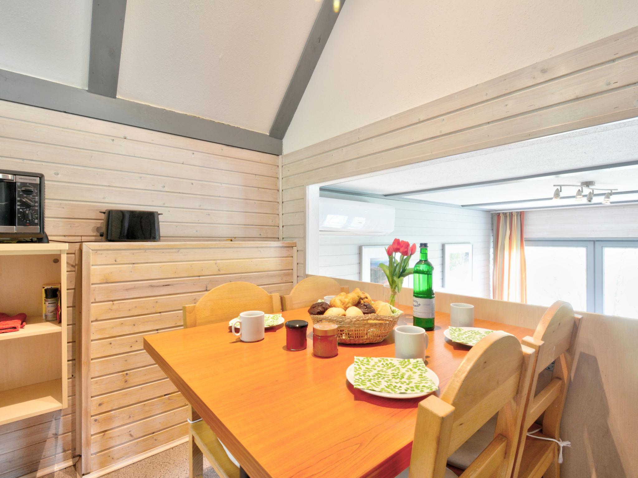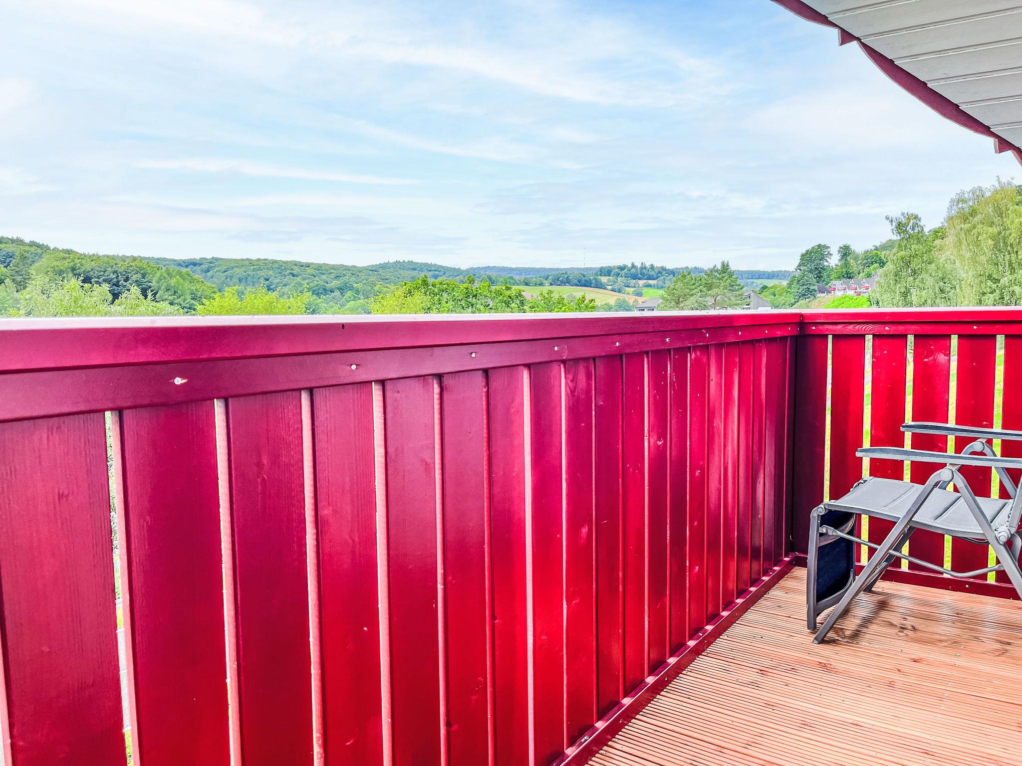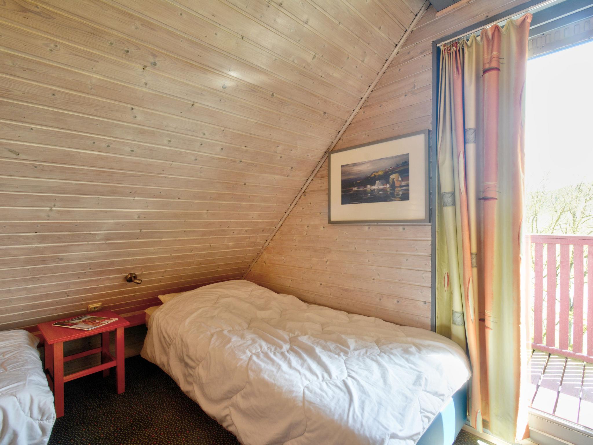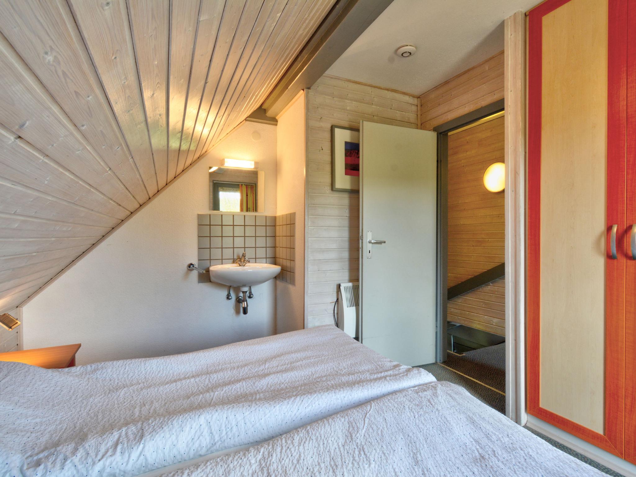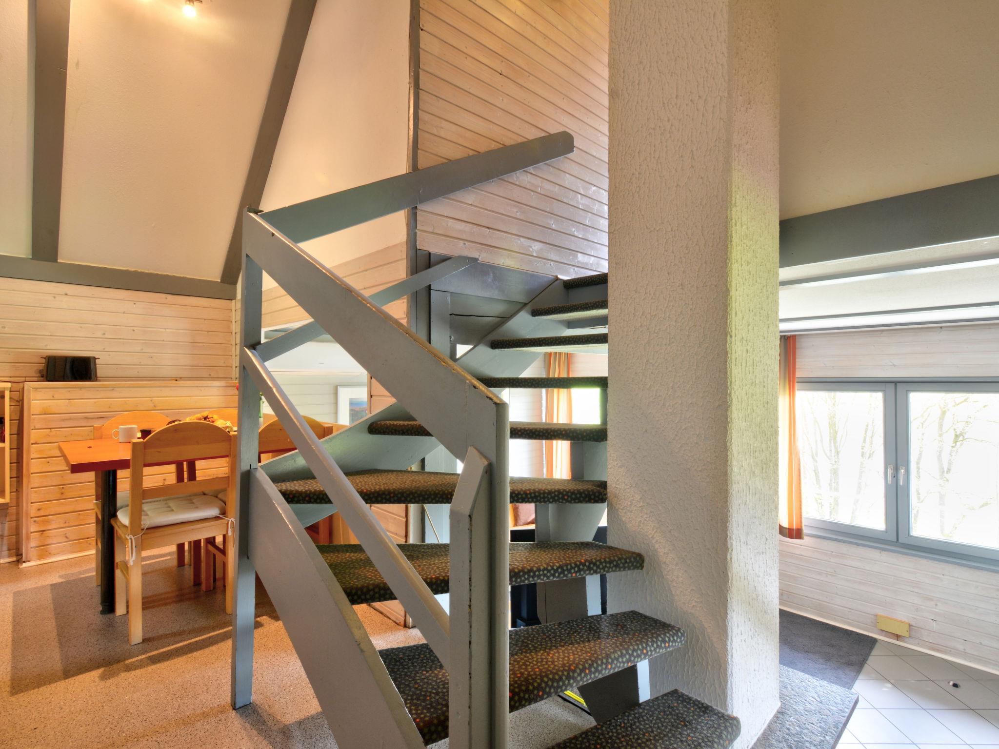 "Dorf 1/Haus 14", 4-room house 75 m2 on 2 levels, on the ground floor. Cosy furnishings: living/dining room 22 m2 with open-hearth fireplace and satellite TV (flat screen). Exit to the terrace, to the patio. 1 room 12 m2, with sloping ceilings with 2 beds (90 cm, length 200 cm). Open kitchen 8 m2 (mini-oven, 4 ceramic glass hob hotplates, microwave, electric coffee machine). Shower/WC, sep. WC. Upper floor: (spiral staircase), 2 rooms 10 m2, with sloping ceilings, each room with 2 beds (90 cm, length 200 cm), hand-basin. Exit to the balcony. Electric heating. Small balcony 5 m2, terrace 10 m2 partly roofed, patio 30 m2, lawn 30 m2. Terrace furniture, balcony furniture, barbecue (portable). Beautiful view of the lake and the countryside. Facilities: children's high chair, logs (extra). Parking at 100 m. Please note: non-smoking house. Maximum 2 pets/ dogs allowed. Smoke alarm, fire extinguisher. On the ground floor, the rooms are connected by stairs(mezzanine). Distance to the reservoir: 200 m. Steep path from the car park to the house.
