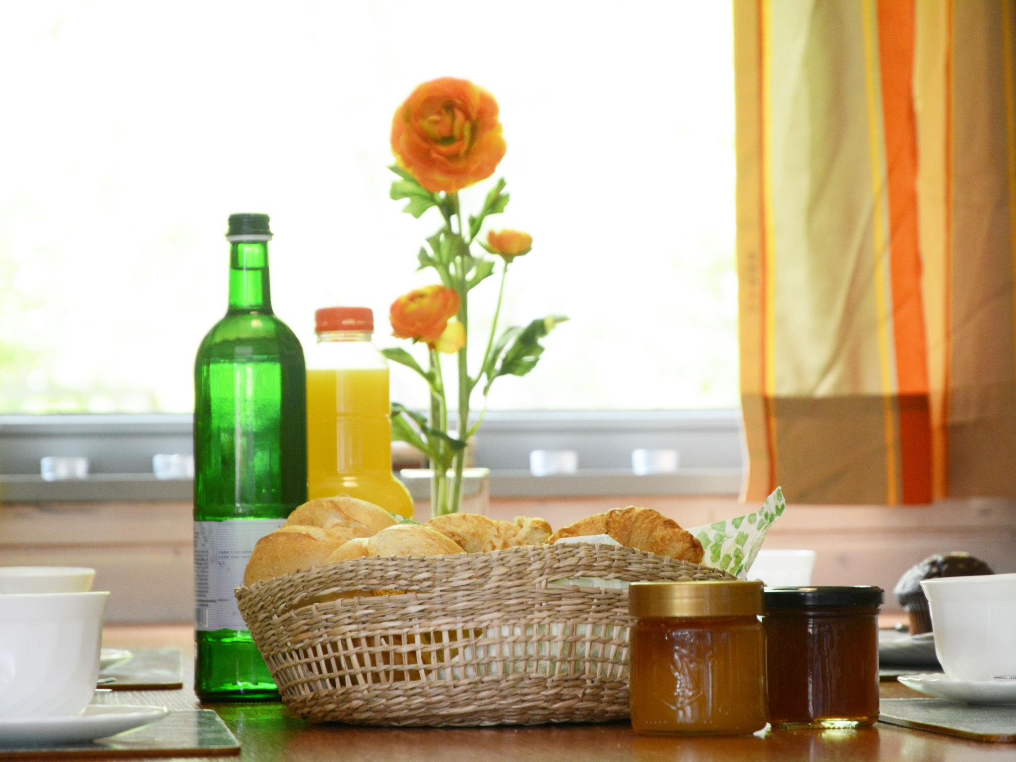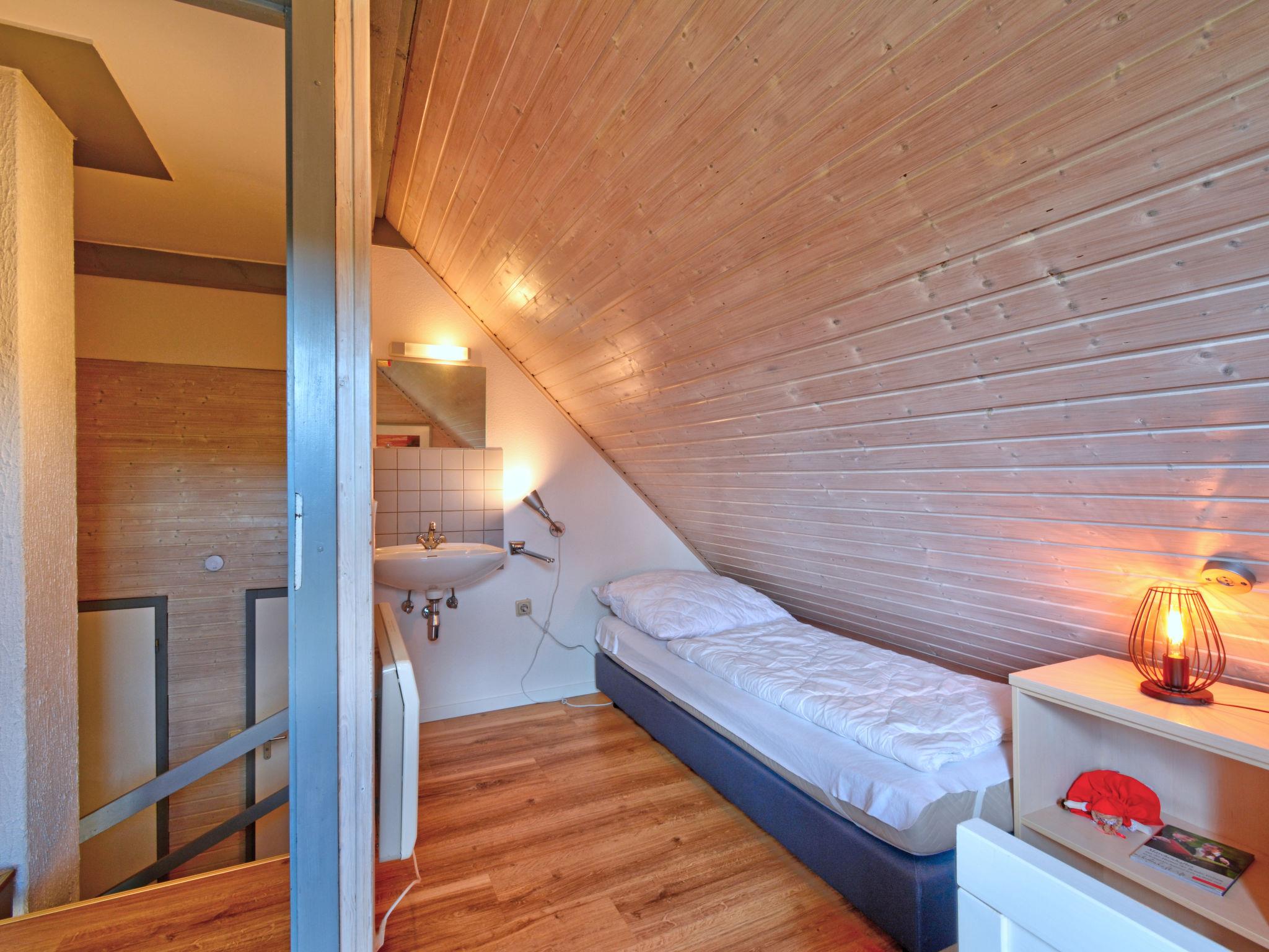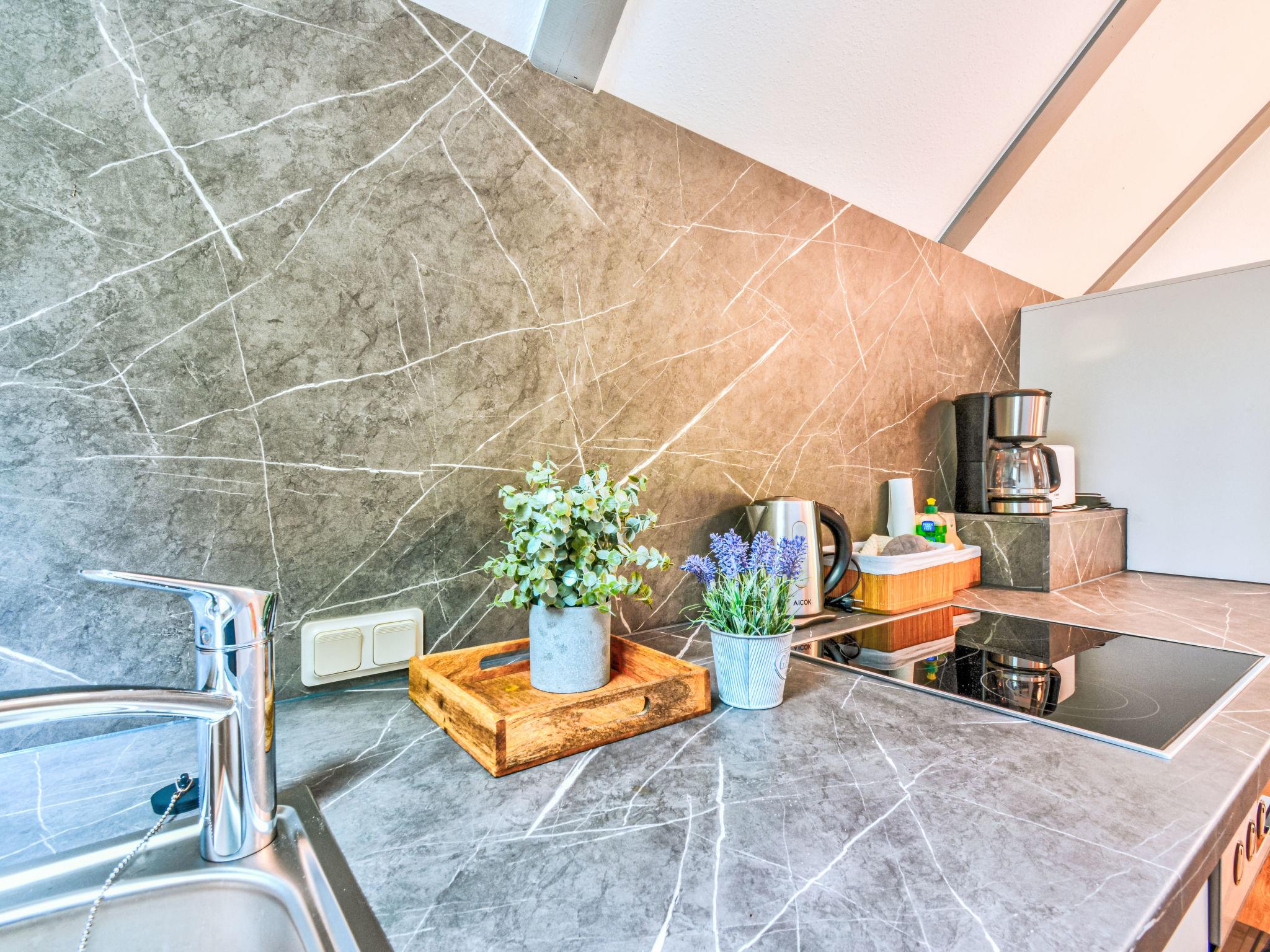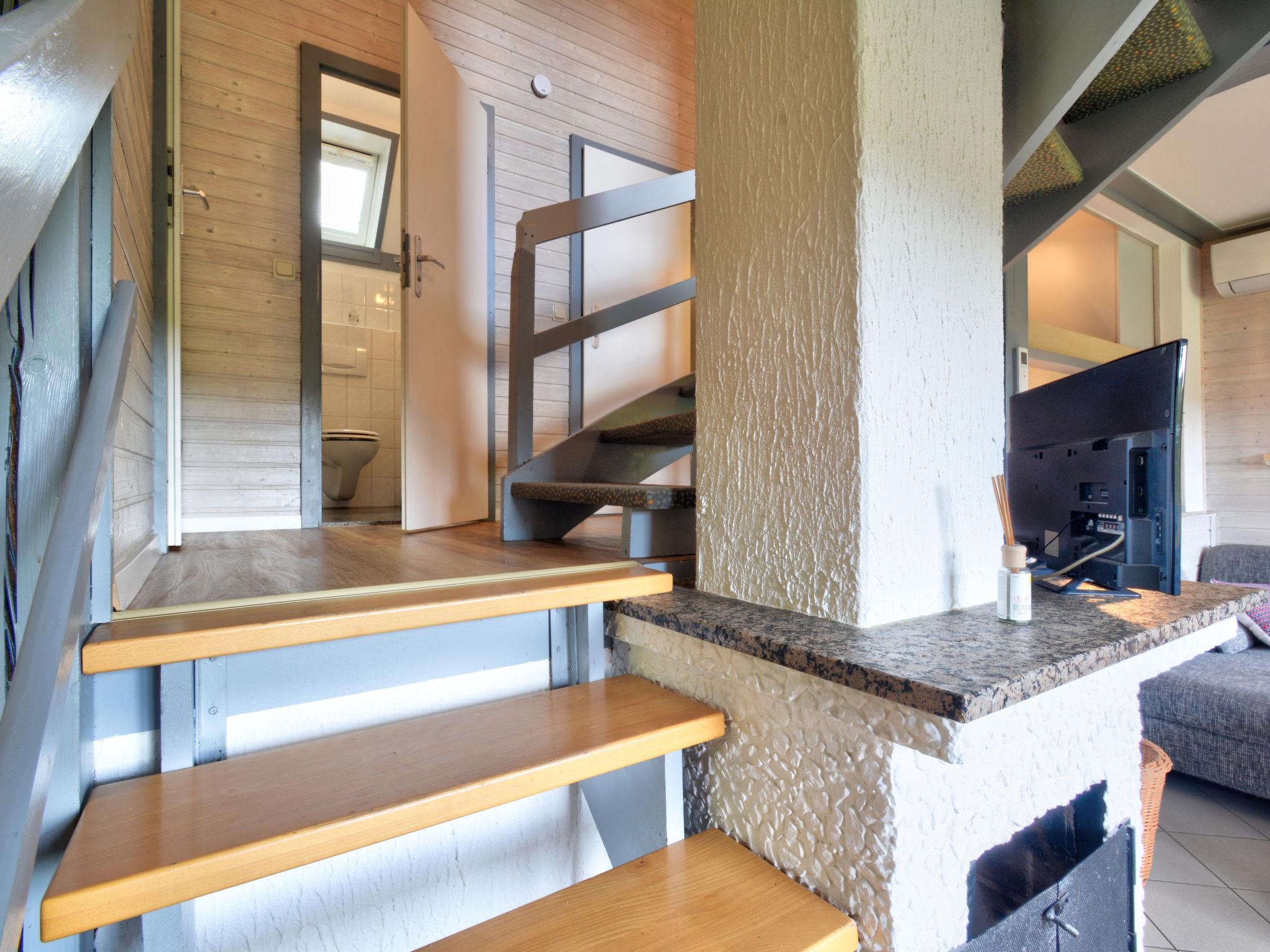 "Dorf 2/Haus 68", 4-room house 75 m2 on 2 levels, on the ground floor. Partly renovated in 2023, cosy furnishings: living/dining room 22 m2 with open-hearth fireplace and satellite TV (flat screen), hi-fi system. Exit to the terrace, to the patio. 1 room 12 m2, with sloping ceilings with 2 beds (90 cm, length 200 cm). Open kitchen 8 m2 (mini-oven, 2 ceramic glass hob hotplates, microwave, electric coffee machine). Shower/WC, sep. WC. Upper floor: (spiral staircase), 1 room 10 m2, with sloping ceilings with 2 beds (90 cm, length 200 cm), hand-basin. Exit to the balcony. 1 room with sloping ceilings with 1 bed and hand-basin. Electric heating. Small balcony 5 m2, terrace 10 m2 partly roofed, patio 30 m2, lawn 50 m2. Terrace furniture, balcony furniture, barbecue (portable). Beautiful view of the lake and the countryside. Facilities: children's high chair, baby cot, logs (extra). Internet (WiFi, free). Please note: non-smoking house. Maximum 2 pets/ dogs allowed. Smoke alarm, fire extinguisher. On the ground floor, the rooms are connected by stairs (mezzanine). Distance to the reservoir: 400 m.