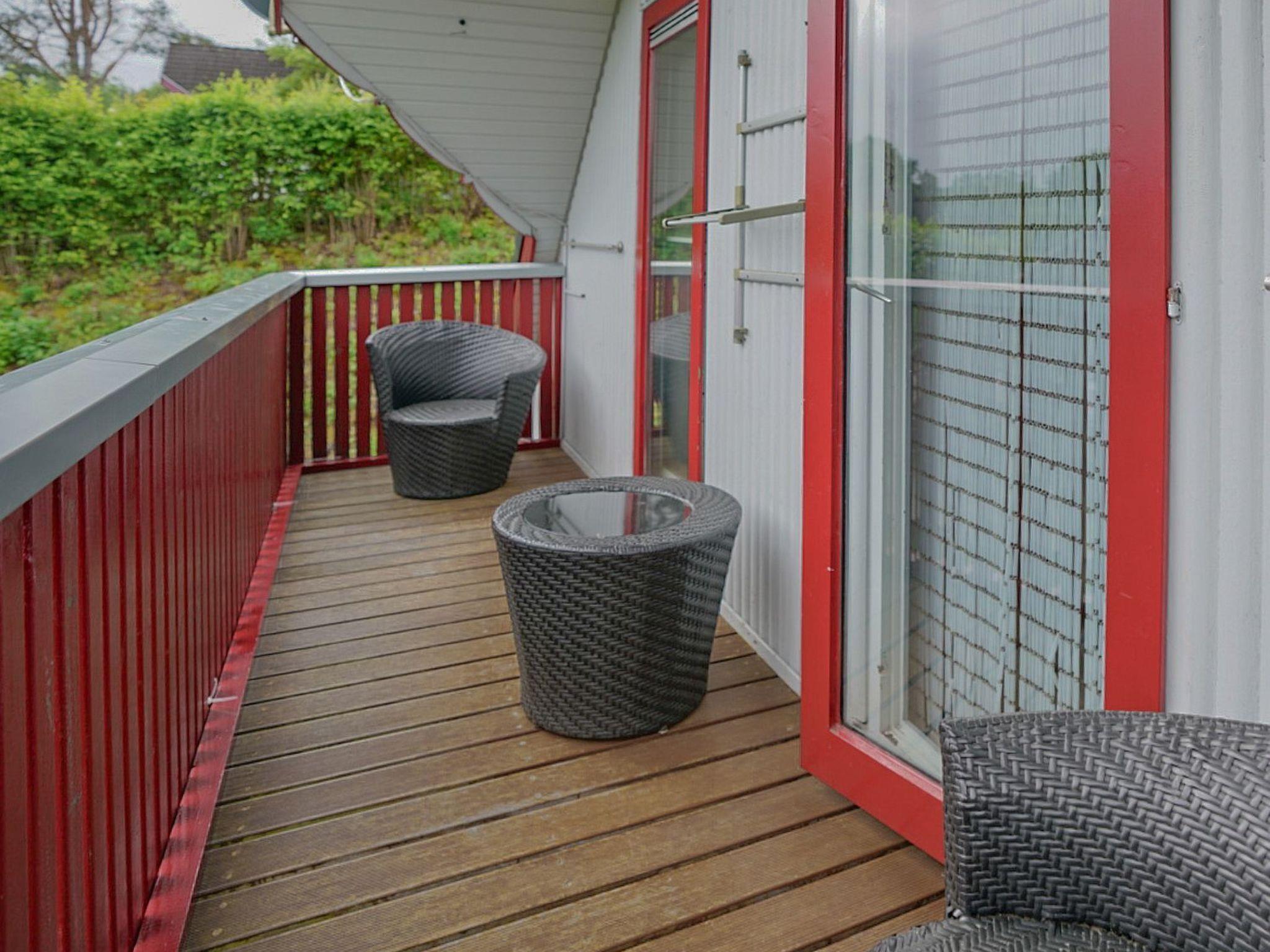 The well-kept outdoor area offers ideal conditions for relaxing hours outdoors with its terrace on the ground floor and a spacious balcony on the upper floor, both with views of the surrounding holiday park. The direct balcony access from the bedrooms to the south side and cosy garden furniture underline the feeling of freedom and openness and invite you to linger and enjoy.