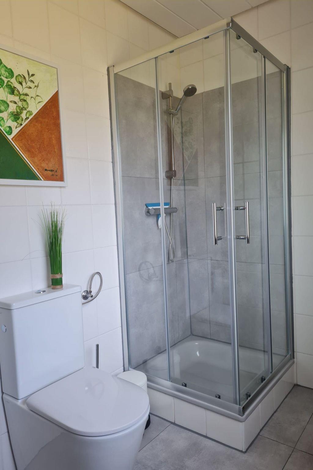 Inside, a warm and cosy atmosphere awaits you, complemented by modern and comprehensive furnishings. The furnishings include a living room with TV, a dining area and a large dining table for communal meals. The rooms are divided into various bedrooms, equipped with comfortable beds, some with balcony access, wardrobes and even washbasins for a touch of luxury. The interior is complemented by two bathrooms with underfloor heating and a well-equipped kitchen.