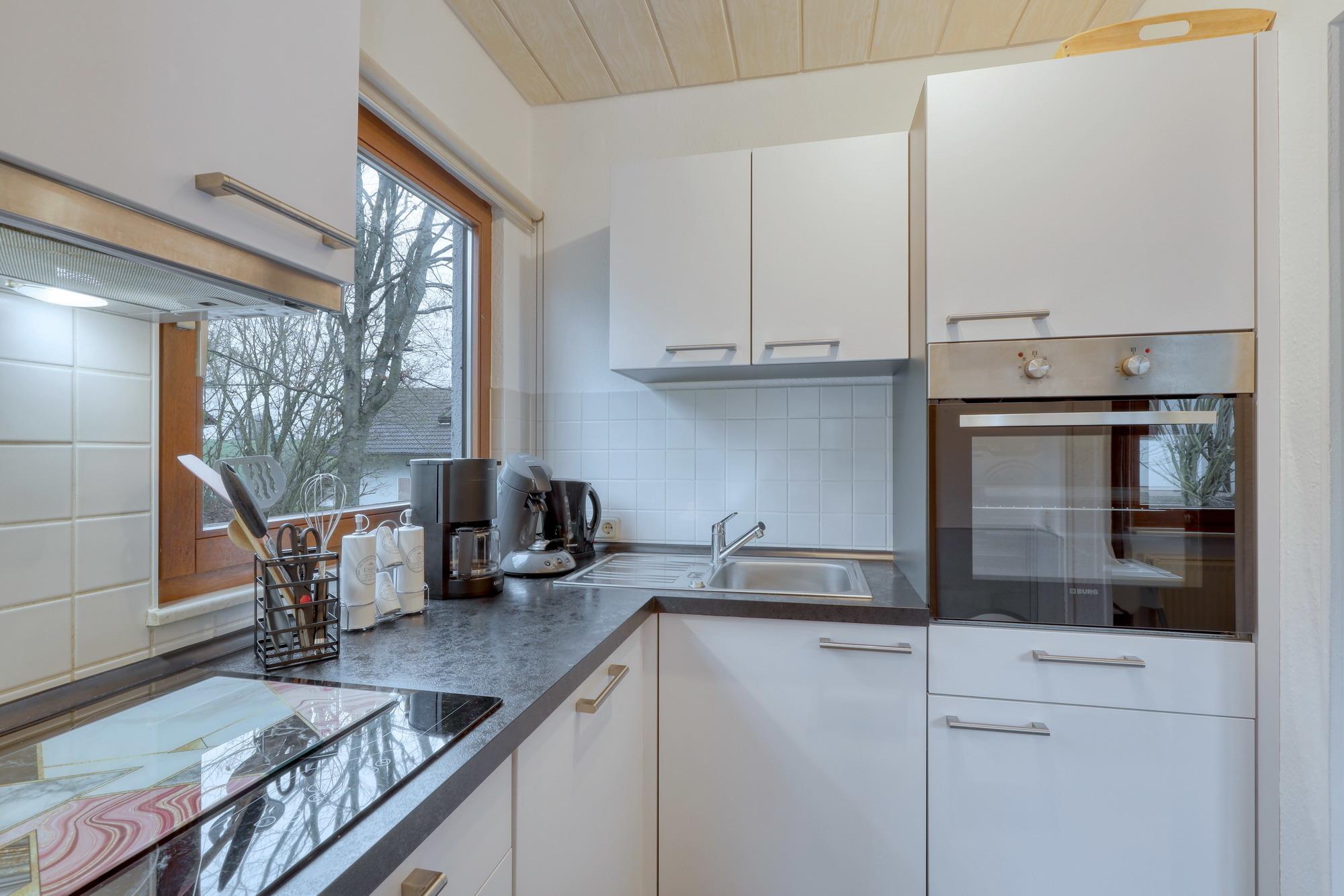 In der angrenzenden vollausgestatteten Küche finden Sie alles für die Realisierung Ihrer eigenen Kochideen.