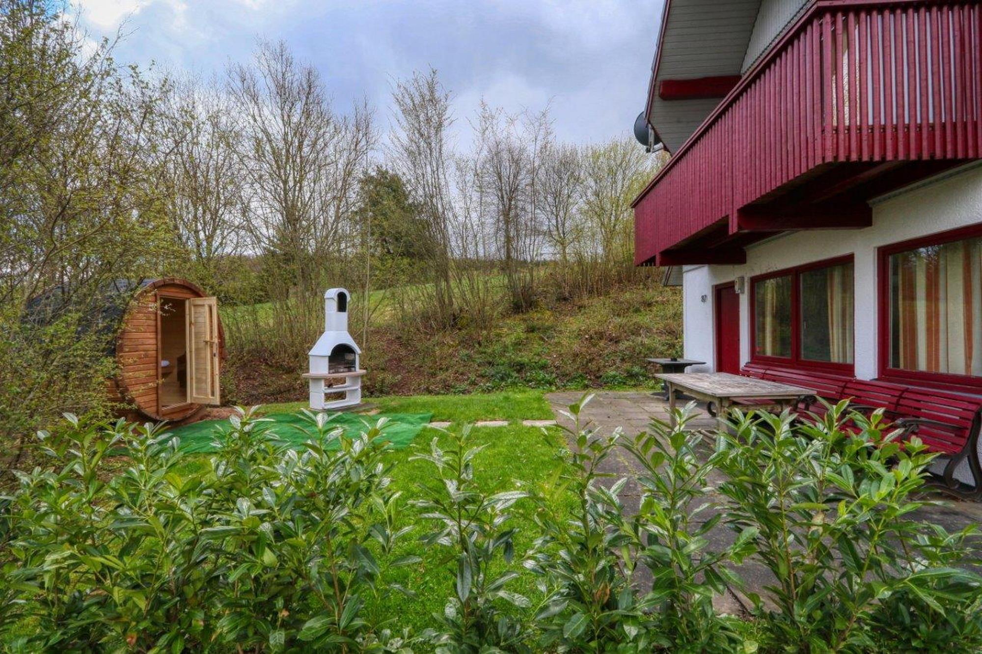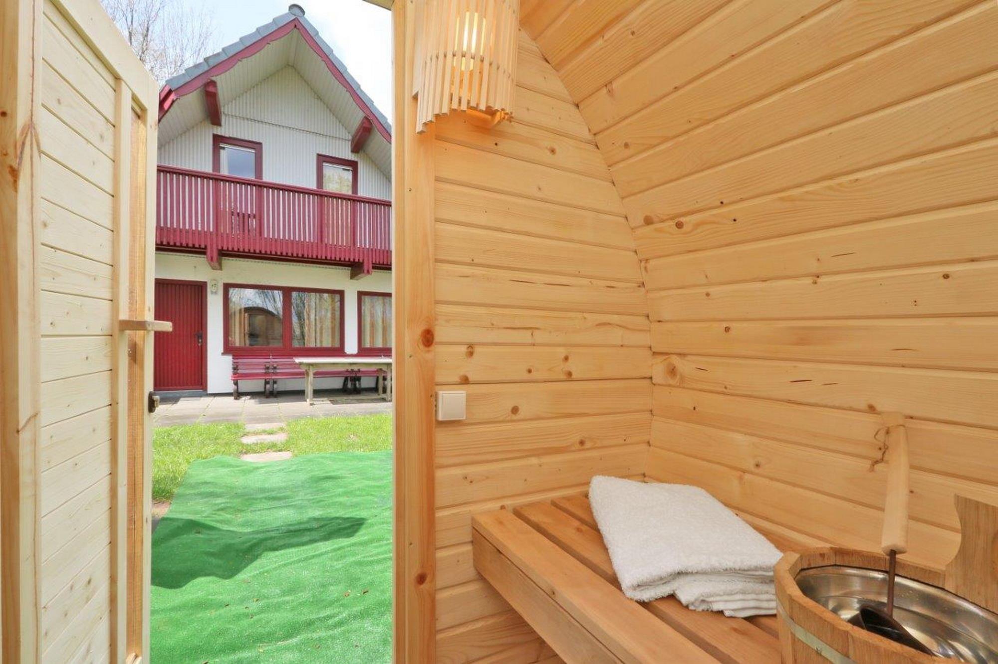 Auf der Terrasse steht Ihnen ein Grillkamin für gemütliche Abende zur Verfügung. Von der Terrasse betreten Sie die Sauna, wo Sie jederzeit ungestört entspannen können.