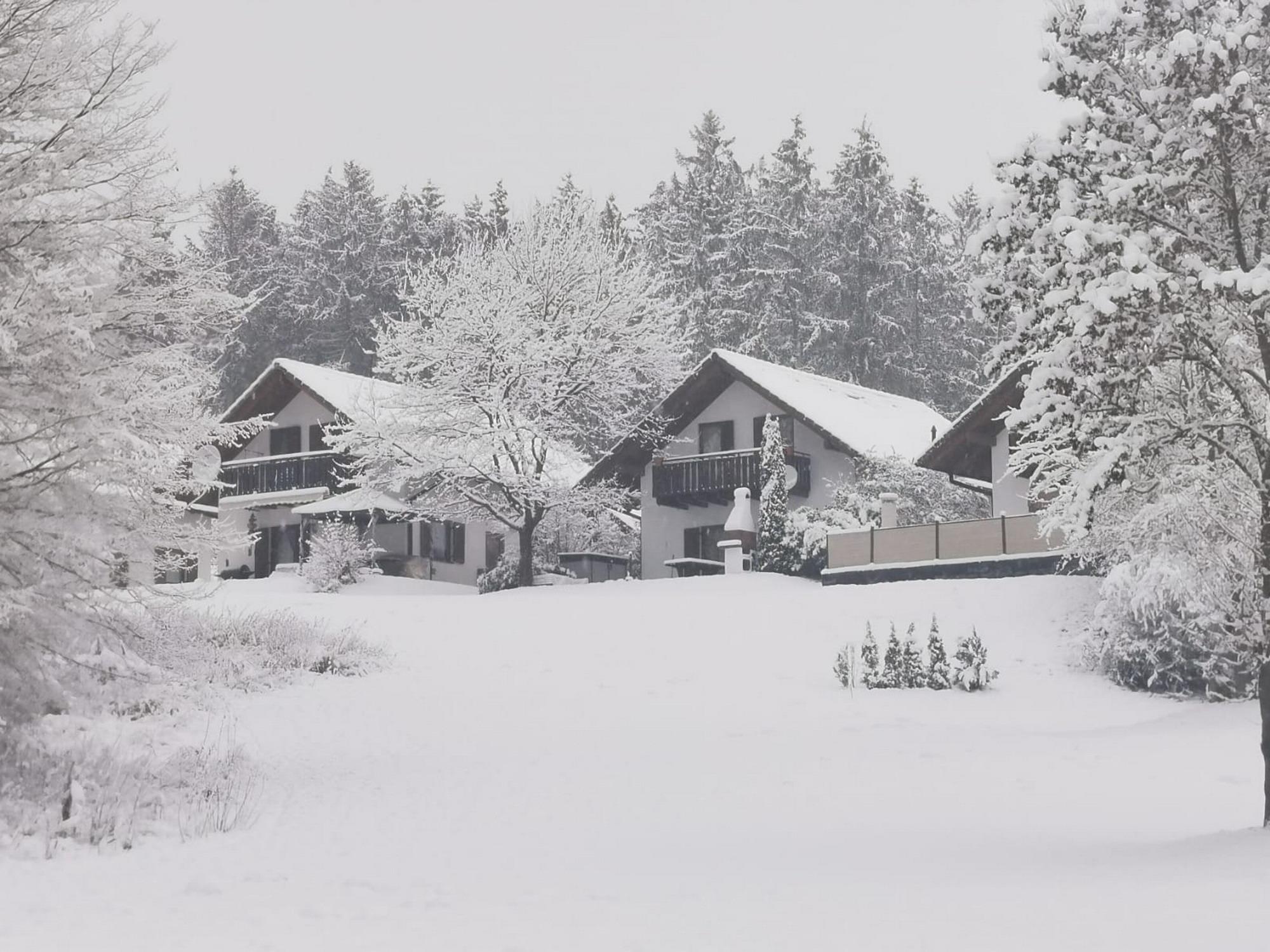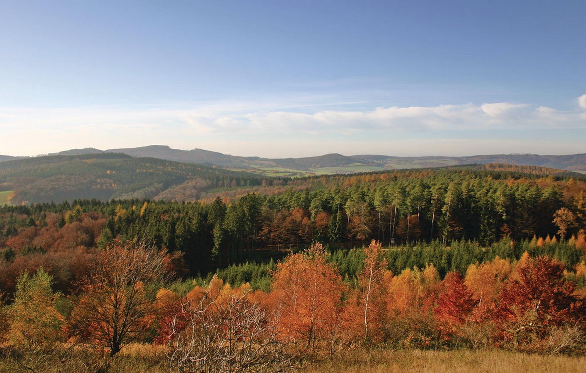 Von dem Balkon aus können Sie die Aussicht in den Wald und die Landschaft vom Hessischen Bergland genießen.